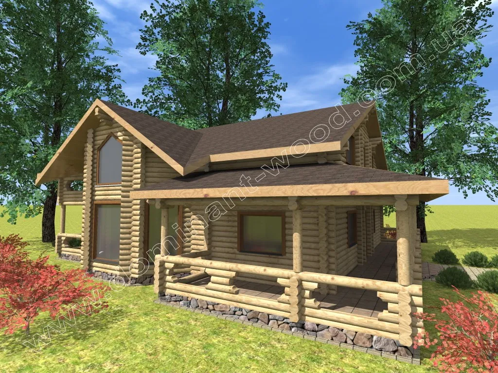 Двоповерховий «Віденський будинок» з розкішними терасами та другим світлом одразу притягує погляд. Його різнорівневий дах, великі вікна другого світла, затишні балкончики й відкриті тераси формують яскравий, гармонійний образ, що виділяється на тлі інших маєтків. Такий дерев’яний особняк не просто виглядає ефектно - він підкреслює витончений смак господаря та його високий статус.
