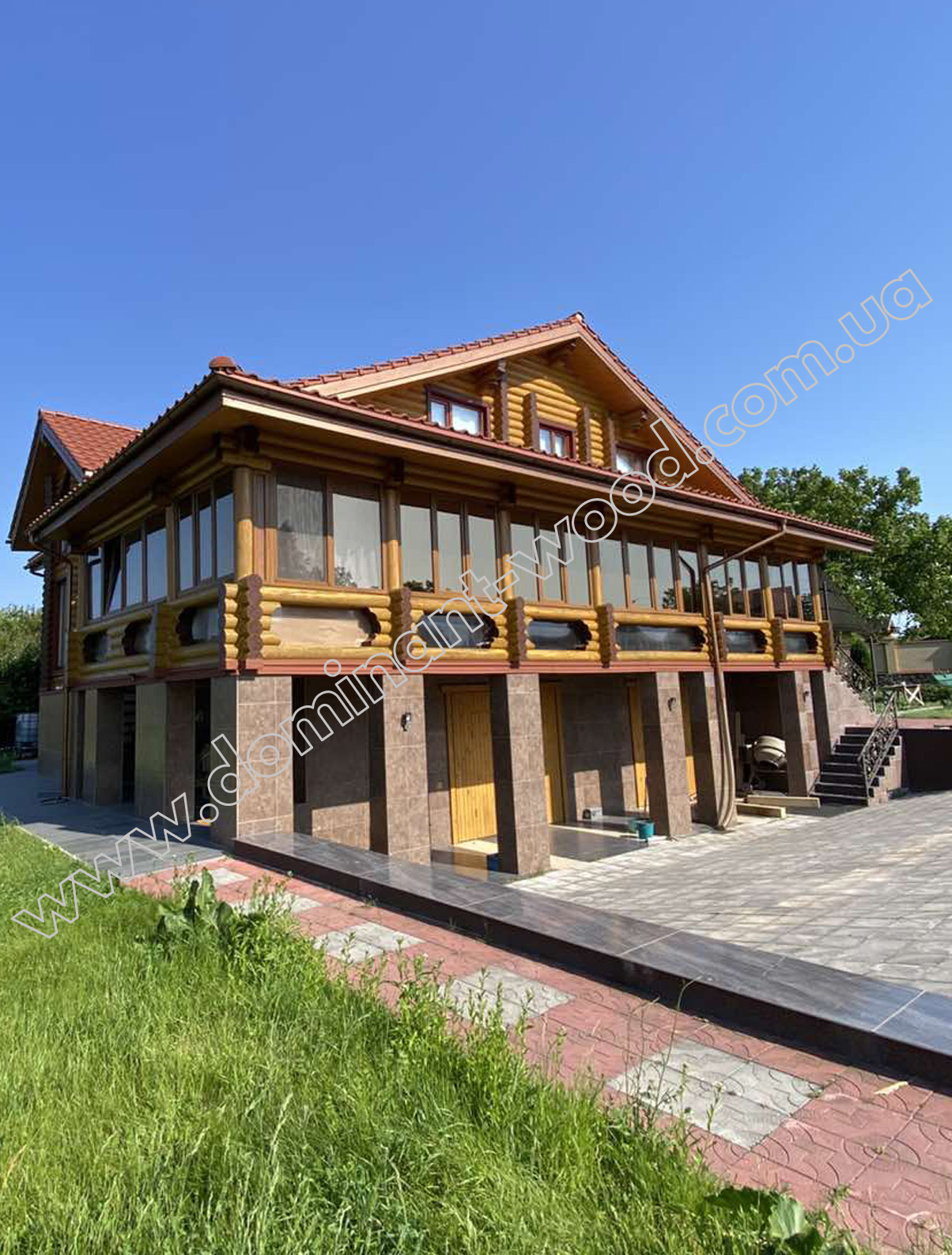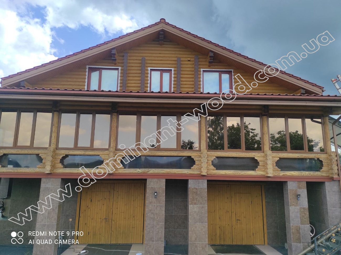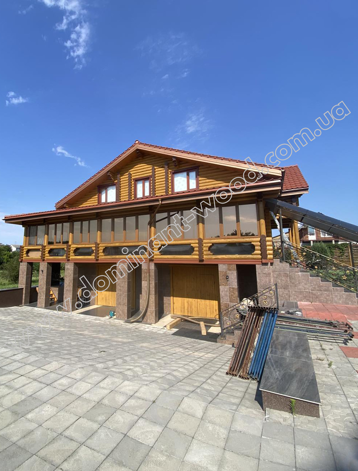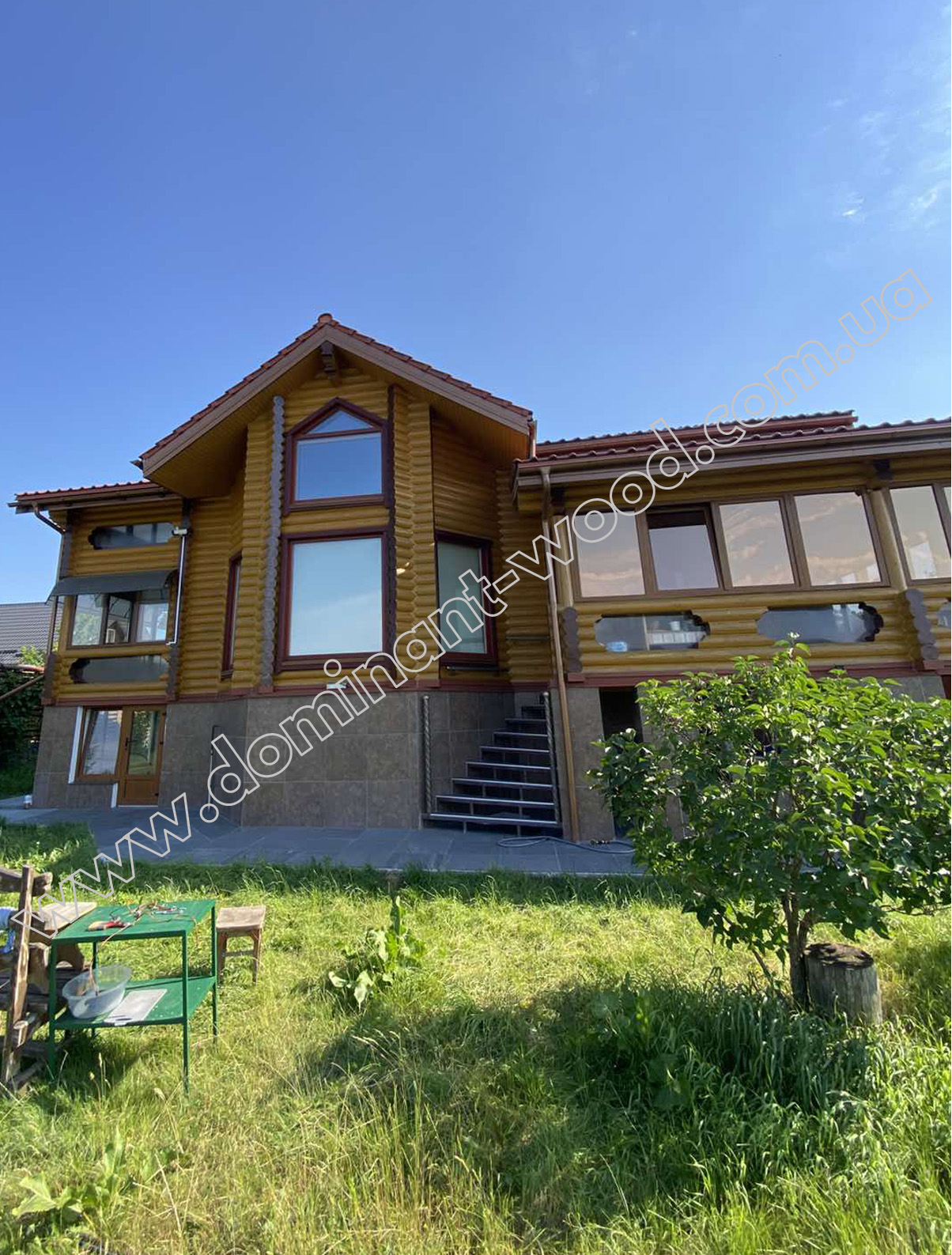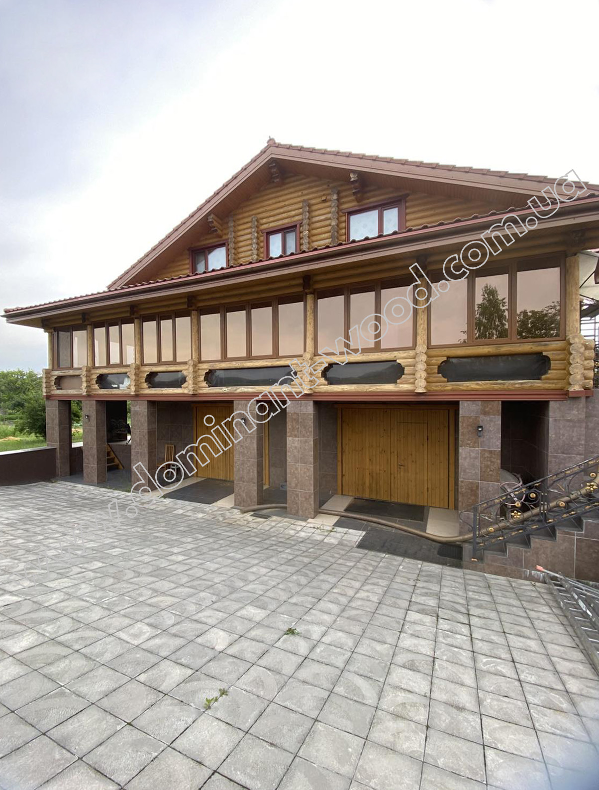 Фасад маєтку, виконаний з ошатного оциліндрованого брусу, виглядає респектабельно. Тож саме щоб освіжити привабливий і багатий вигляд будинку, нещодавно майстрами «Домінант» було оновлено покриття стін. А саме ми пошліфували і перефарбували зруб, тим самим прикрасивши і захистивши його ще на майбутні шість-вісім років.