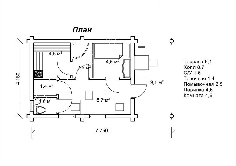 В основу будиночка площею 48,4 м2 з оциліндрованих колод 160 мм був обраний проект «Гратен». Але за бажанням нашого замовника були внесені значні зміни: загальну площу збільшили, у одного з двох входів з'явився теплової тамбур 2,6 м2 с целью экономии тепла в помещении, внутренние помещения перегородили каркасними перегородками і не захотіли робити лазню всередині будиночка. Тобто, від початкового проекту в будинку зберігся тільки його вишуканий зовнішній вигляд, але наш замовник отримав саме той оциліндрований дачний будиночок, про який завжди мріяв.