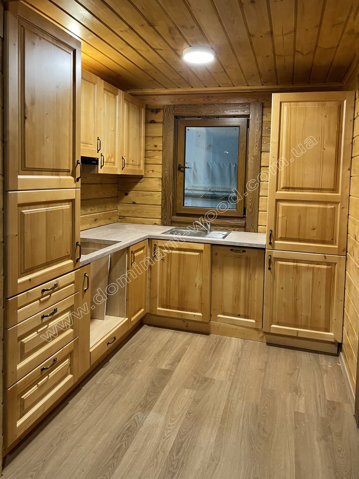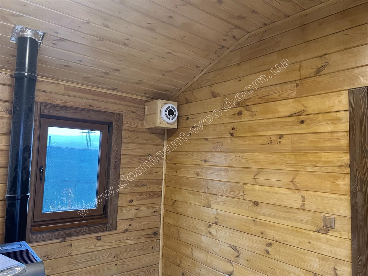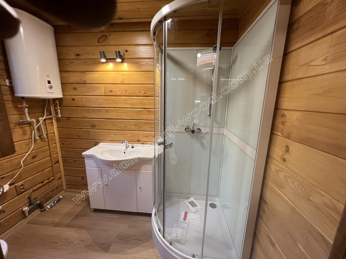 Так само котедж може використовуватись як влітку, так і взимку. Достатня товщина соснових брусів, з яких складені стіни, а саме 200 мм робить будову всесезонною за рахунок гарної теплоізоляції. Такої товщини соснового брусу вистачає для круглорічного проживання з комфортом, адже по показниках теплоізоляції 200 мм сосни еквівалентно 890 мм цегляної стіни. Плюс колоду не потрібно рівняти, обшивати, утеплювати та оздоблювати. Вона сама по собі естетично приваблива і має довершений вигляд. Погодьтеся, що добротний вигляд масиву дерева створює дуже гарне враження від будиночку, і він виглядає набагато ошатнішим і шляхетнішим, ніж металеві, пересувні вагончики. Звичайно, рекомендується пофарбувати будиночок по завершенню усіх робіт зовні і в середині. Але про безпеку конструкції перед загорянням, сирістю, грибками та шкідниками господарю турбуватися не знадобиться, адже ми вже подбали попередньо про захист комплекту будинку на заводі, обробивши його антисептиком ще до відвантаження на експорт.