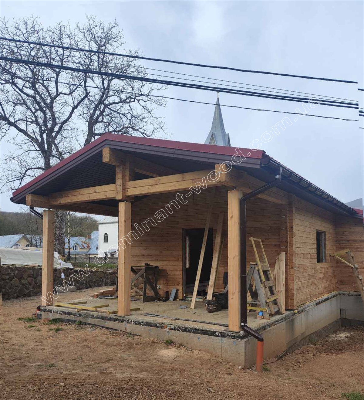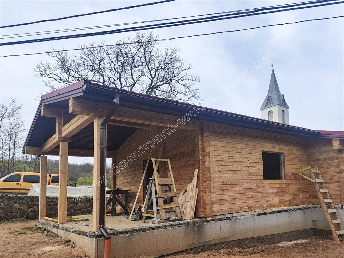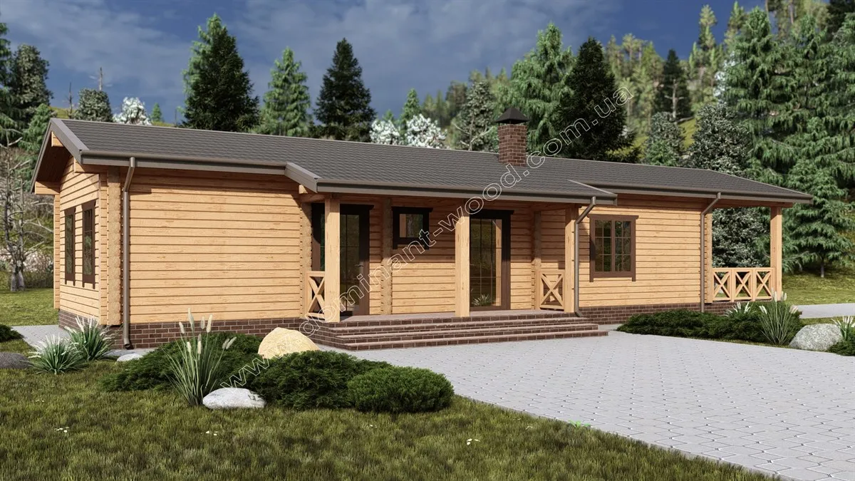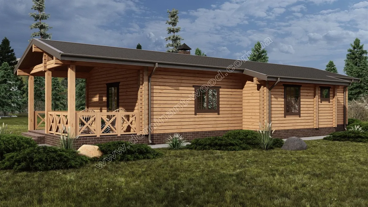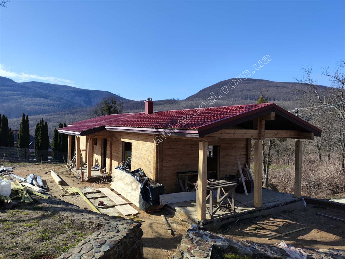 Зовнішня презентабельність струганих, дерев’яних стін не вимагає ніяких додаткових прикрас у вигляді обшивки фасадів, декорування або облицювання. Достатньо лише підкреслити природну естетику шліфуванням та покриттям для захисту і довговічності. Тому котеджі з брусів можна порівняти з готовими конструкторами, які достатньо легко і швидко складаються та не потребують масштабних фінішних робіт. За окрему вартість майстри «Домінант» можуть зібрати такий готовий будинковий комплект на фундамент замовника та доповнити зруб покрівлею, поставити вікна, двері, тощо. Саме таку додаткову комплектацію ми виконали по замовленню на котедж «Олеандра».