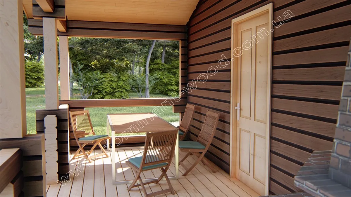 В результаті змін в проекті, клієнт отримав простору і затишну, закриту веранду, лазню та сарай. І це все в одному привабливому, дерев’яному будиночку. Таку гарну функціональність садової будови важко переоцінити. По-перше, лазня - це завжди здоров'я та благополуччя. Регулярне використання лазні сприяє очищенню організму, поліпшенню кровообігу, зняттю стресу та підвищенню імунітету. По-друге, дерев'яні стіни лазні зберігають тепло набагато краще, ніж інші матеріали, що робить парні процедури в такій лазні ще більш приємними та економічними. Окрім цього, дерев'яна лазня має особливий природний аромат, який створює атмосферу релаксу та спокою. А можливість оформити лазню на власний смак і додати додаткові елементи, такі як терасу чи зону відпочинку, або комору чи сарайчик – робить її ще більш привабливою.