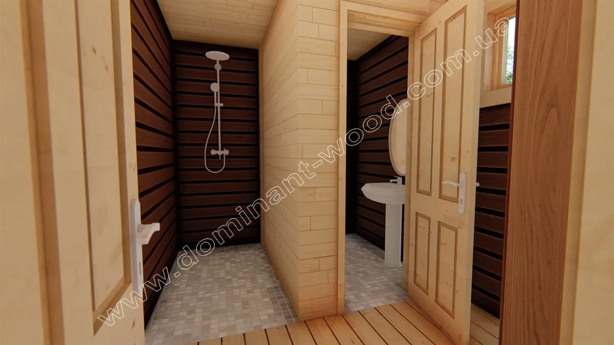 Дерев'яна лазня «Карой» презентується в каталозі лазень з дерева «Домінант» в класичному стилі дерев’яного котеджу. Затишний ґанок перед входом, де можна відпочити після банних процедур, насолоджуючись свіжим повітрям та природою, відразу привертає увагу до проекту. Компактна площа, проста, квадратна форма споруди в комплексі зі зручним внутрішнім плануванням робить проект «Карой» чудовим вибором для власної ділянки! Оцінивши всі ці переваги лазні з брусів, замовник побажав додати до її дизайну та планування власні вподобання. Ми збудували «Карой» у Васильківському районі, Київської області зі змінами відповідно до бажань клієнта.