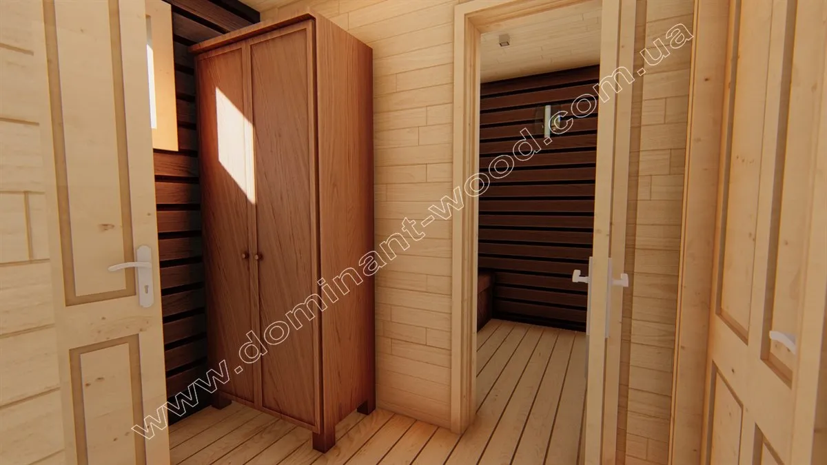 Невеличкий проект лазні за проектом «Карой» покликаний стати ідеальним місцем для відпочинку з близькими людьми та забезпечить чудові умови для розслаблення під час парних процедур. Привабливий, акуратний будиночок з прямими, відшліфованими стінами з сухого профільованого бруса має сучасний і вишуканий вигляд завдяки технології, по якій він виготовлений. Якщо вас цікавлять особливості нашого виробництва сухого профільованого бруса, обов’язково прочитайте статтю «Цілісний сухий профільований брус вакуумної сушки» і дізнайтеся про унікальні переваги цього висушеного і стабілізованого матеріалу.
