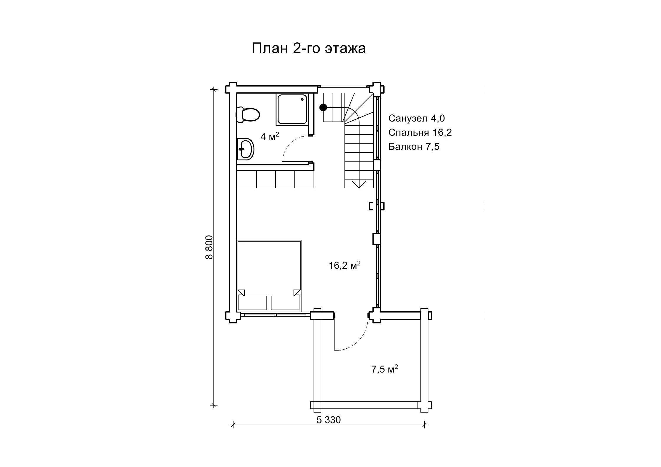 Котедж «Адайра» має площу 77,2 м² і параметри забудови 9,5 на 9,5 м включно з навісом. План розташування приміщень в будинку дуже зручний, впевніться самі: простора кухня-студія площею майже 30 м² розподілена на зони для приготування їжі, відпочинку та обідів. Ванна кімната розміром 6,6 м² містить достатньо простору під душ, ванну й санвузол. Спальня 16,6 м² достатньо велика, аби зонувати її під відпочинок, сон і навіть робоче місце. Легкості у побуті додають допоміжні приміщення: тамбур, де зручно залишати взуття й верхній одяг, а також топкова, яка незамінна для встановлення опалювального обладнання. Окремо варто згадати навіс біля входу. Це помітна архітектурна деталь площею 14,6 м2, яка покликана стати повноцінним місцем для відпочинку на свіжому повітрі, як альтернатива альтанці або літньому павільйону. «Адайра» - це проект для тих, хто шукає комфортне, компактне житло з дерева. Він однаково добре підійде і як дачний будиночок, і як постійна житлова будова. Завдяки низькому коефіцієнту теплопровідності та щільному з’єднанню за допомогою профілю шип в паз, соснові бруси перетином 150*150 мм по периметру будови чудово підтримують приємний мікроклімат та створюють умови для круглорічного проживання. З сухого соснового брусу, з природним, деревним мікрокліматом і зрозумілою архітектурною логікою - саме такий будинок легко уявити своїм.