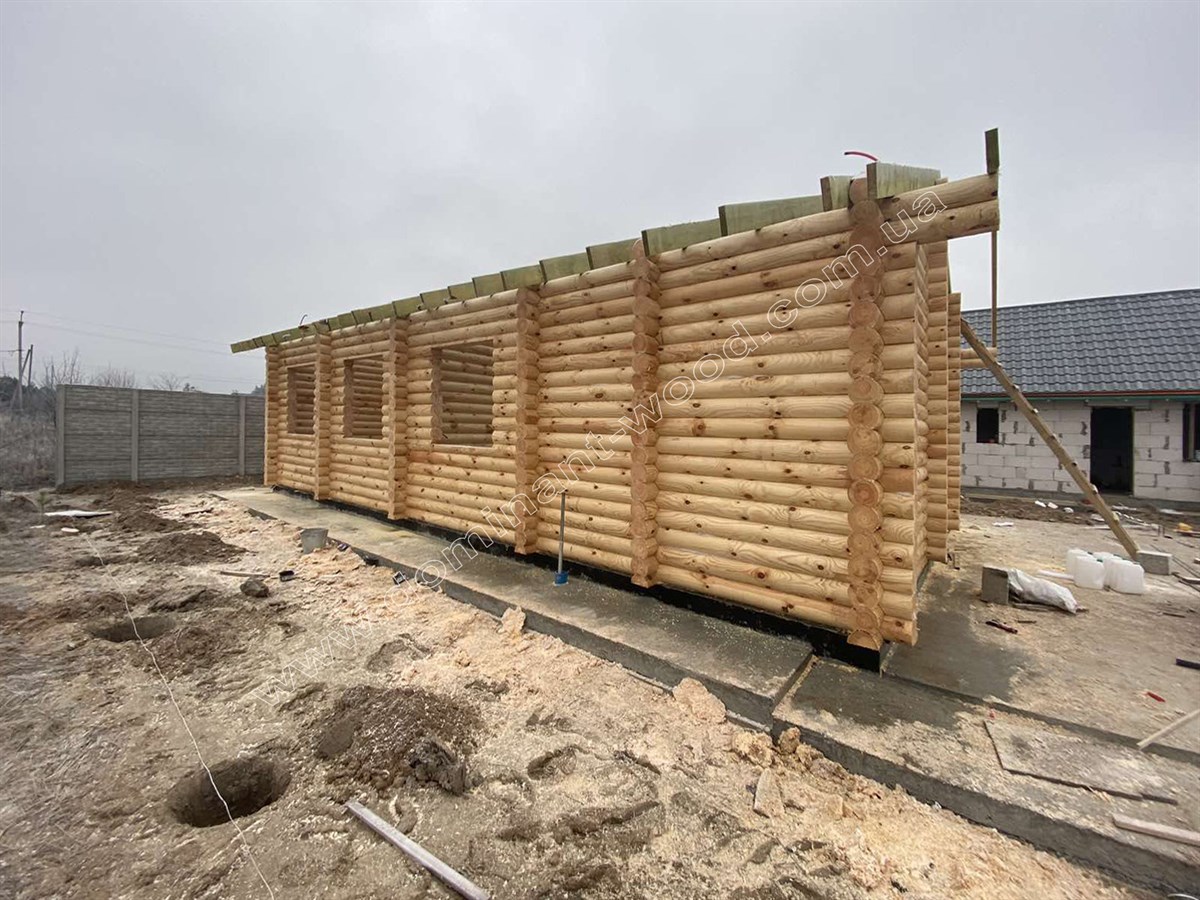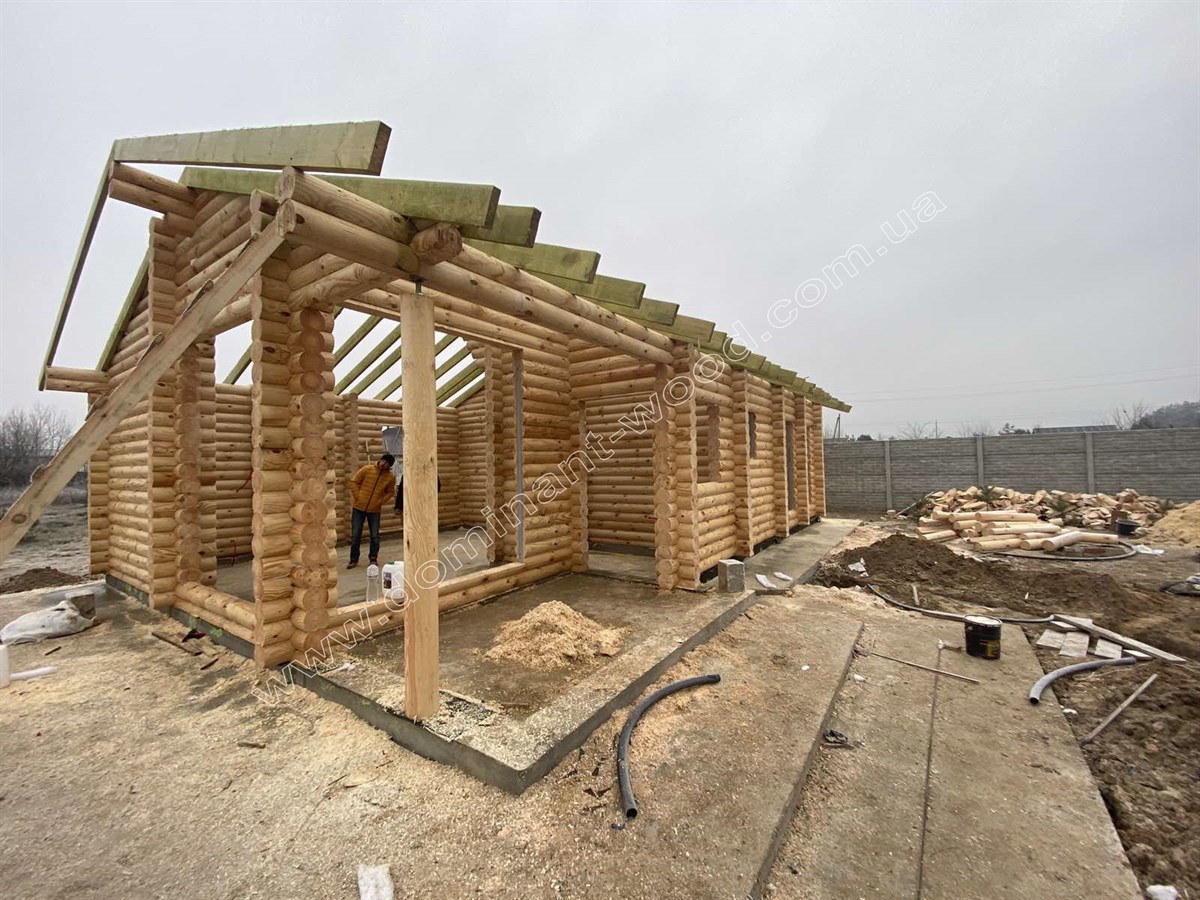 по-перше, змінив запропоновану технологію виконання на оциліндровану колоду діаметром 180 мм. Це гарний та економічний вибір для котеджу, в якому планується сезонне проживання;