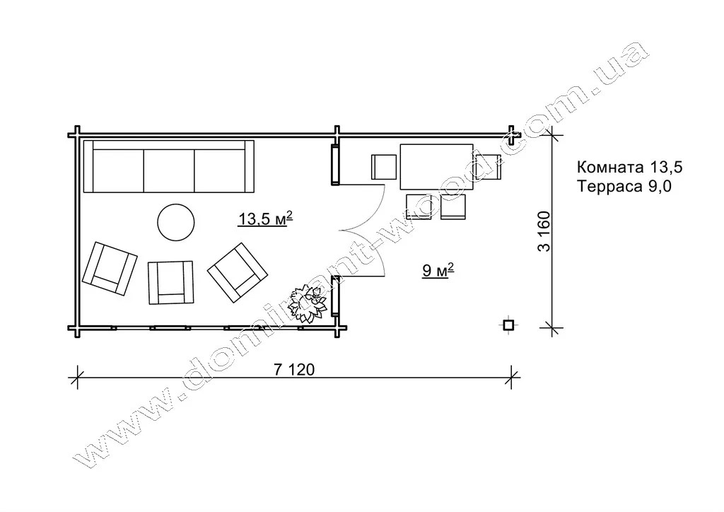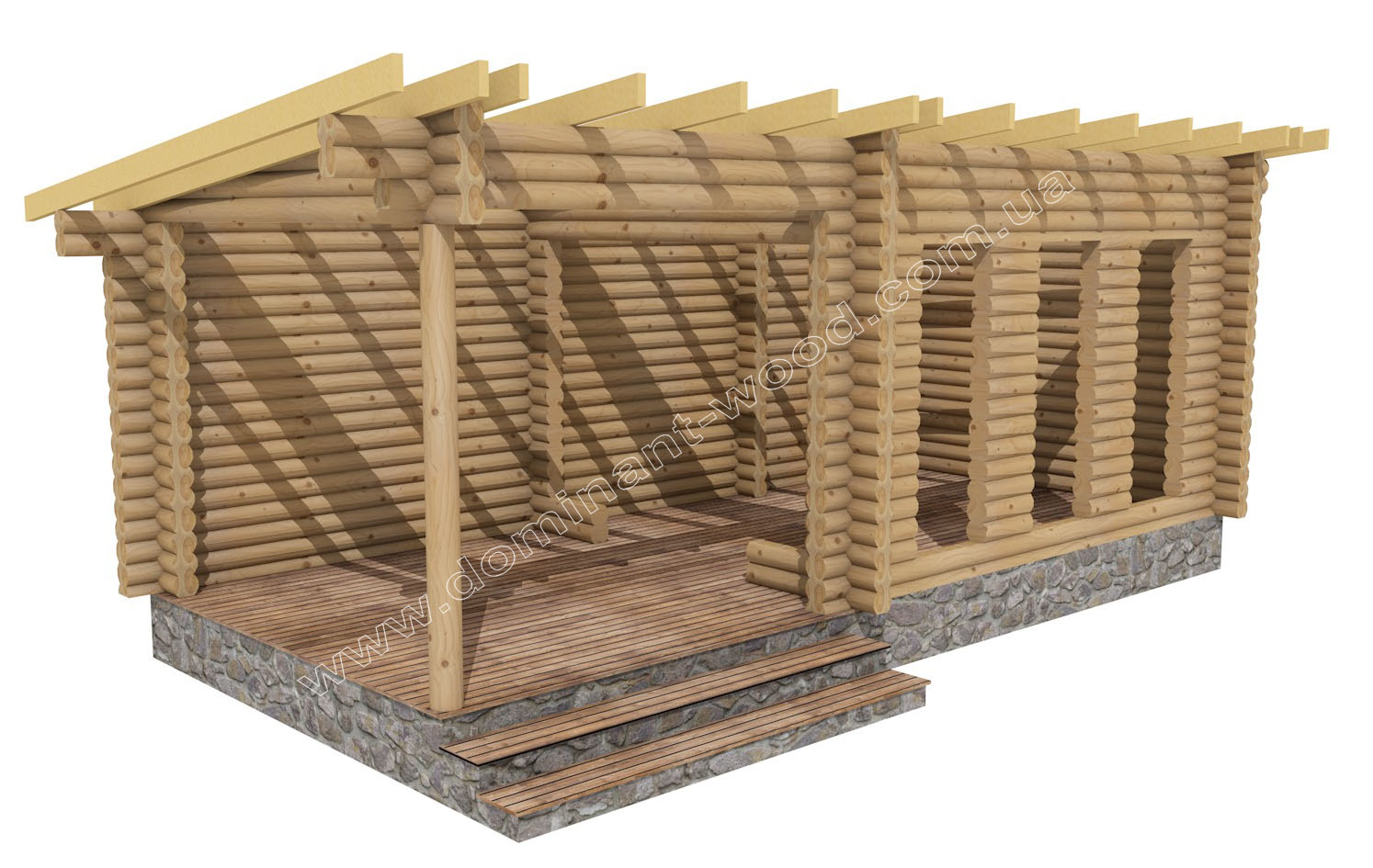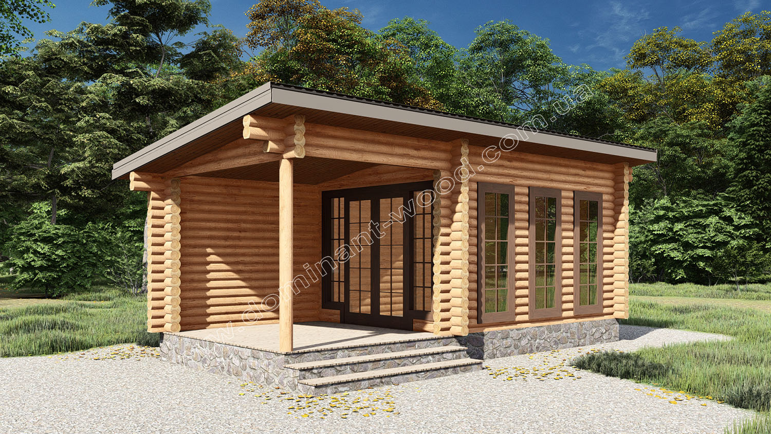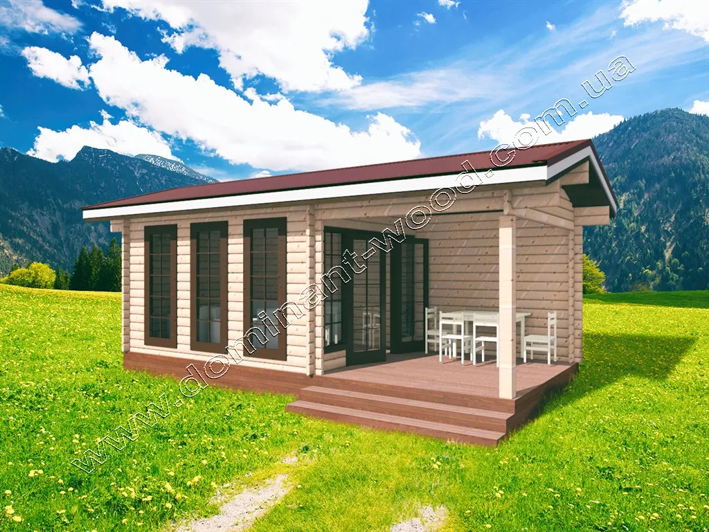 Цей будиночок є одним з найбільш багатофункціональних проектів від виробника дерев’яних конструкцій «Домінант». Простота конструкції, доповнена панорамними вікнами, дозволяє використовувати його як зимову альтанку, літню кухню , дачний будиночок, садовий павільйон, банкетний зал або навіть адміністративне чи офісне приміщення.