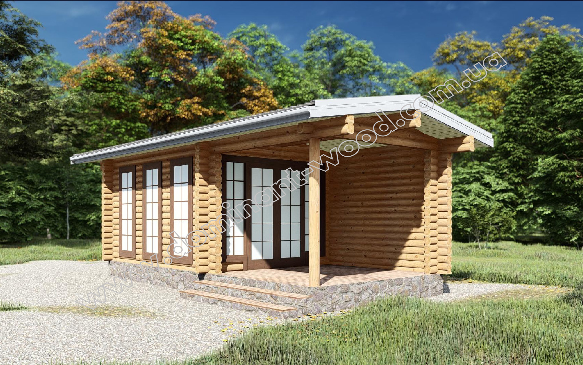 Якщо детальніше розглянути планування, то внутрішнє приміщення будівлі має площу 13,5 м2, а тераса біля входу ще 9 м2. Завдяки цьому тут приємно перебувати як усередині під час дощу чи вітру, так і на відкритому повітрі в сонячну погоду. Виходячи з простоти та легкості конструкції, спочатку ми запропонували її виконання з брусів 60*150 мм. Тонкий, літній варіант брусу підходить для сезонних будівель або технічних приміщень, в яких не планується жити на постійній основі. Саме в такому виконанні наш проект презентується на сайті. Але його популярність стала засадою замовлень будиночку в різних варіантах брусу, не тільки профільованого, але й оциліндрованого. Після ознайомлення з різними моделями одного й того ж самого будиночку, ви зможете обрати той, що вам більше припаде до душі.