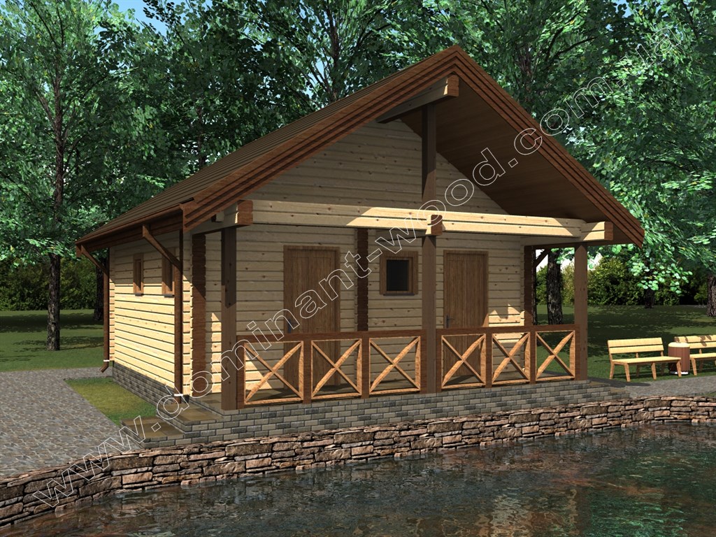 Лазня з брусу «Купата» має максимально зручне планування приміщень для повноцінного банного відпочинку, а також оснащена усім необхідним для успішного використання в комерційних цілях. Насамперед, це велика парилка, де зручно може розташуватися до десяти гостей одночасно. Як правило, обираючи лазню для приватного використання, зупиняються на менших розмірах парилки – 2-4 м2. Також лазня оснащена терасою, куди можна вийти освіжитися після парильні, що так полюбляють прихильники контрастних процедур. Матеріал виконання лазні – сухий профільований брус взагалі заслуговує особливої уваги. Адже сосновий брус, просушений до однакової і стабільної вологості 16% якомога спокійніше вестиме себе в умовах перепадів температури і вологи. Це особливо актуально для власника лазні, адже означає значну економію на облицюванні приміщень.