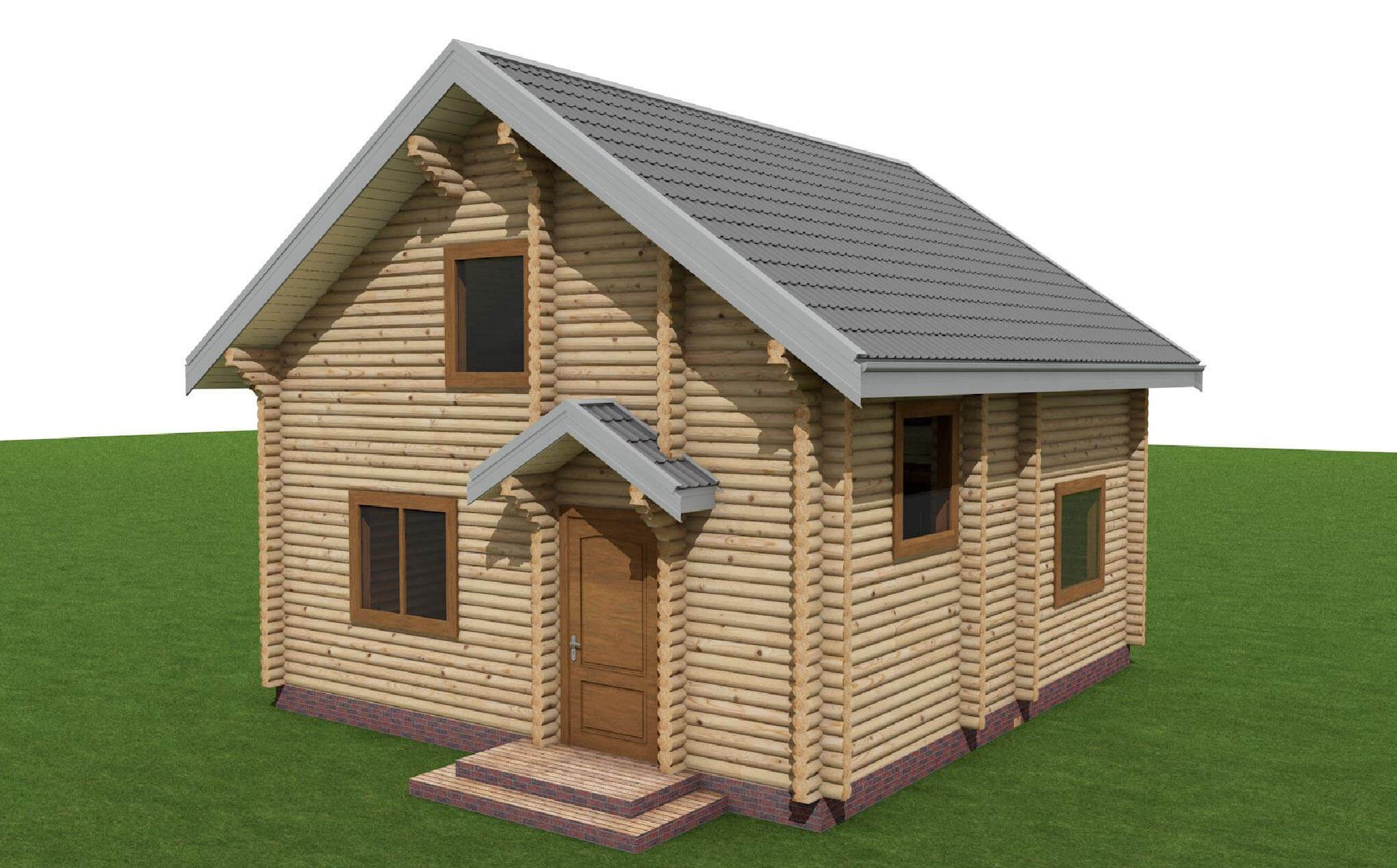 Невеличкий ґанок з навісом додає будинку затишку, запрошуючи зайти всередину й уявити, як тут буде тепло й комфортно. Навколо - спокійна природна місцевість, свіже повітря й простір для відпочинку. Цей будинок ще чекає на завершення, але вже зараз у ньому відчувається потенціал стати улюбленим місцем господарів для проведення відпустки. Він простий, затишний і повністю відповідає уявленням замовника.