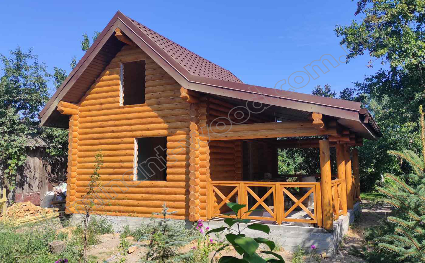 Цей проєкт з’явився завдяки популярності попередньої моделі - «Інфант». Замовники настільки полюбили її, що архітектор «Домінант» створив оновлену версію проєкту «Інфант2» - трохи змінену, з урахуванням особистих побажань одного з клієнтів. А щоб іще більше адаптувати котедж до постійного проживання, наш замовник побажав зробити терасу просторішою, а сам домокомплект зробити з більш масивного діаметру колод - 200 мм. Цієї товщини соснових стін сповна вистачить, щоб отримати максимально природний і стабільний мікроклімат всередині дерев’яного будиночка. Влітку тут буде прохолодно без кондиціонеру, а взимку тепло буде довше утримуватись в приміщеннях, що дозволить дуже гарно економити на опаленні. Завдяки таким чудовим конструктивним рішенням, які ми із задоволенням втілили в життя, наш замовник у Вишгородському районі отримав собі всесезонний будиночок з просторою терасою.