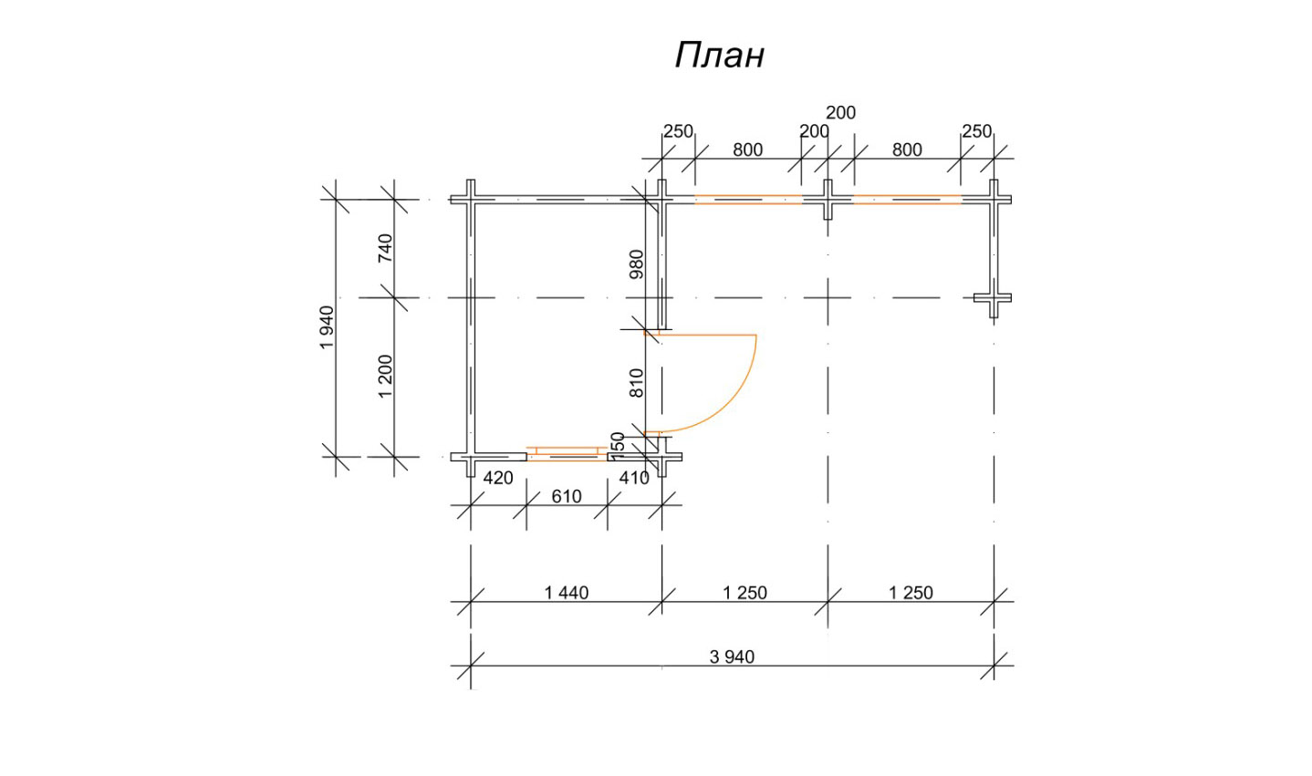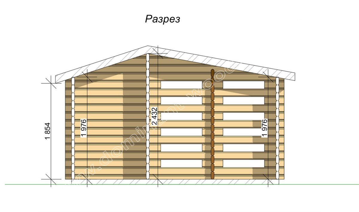 Крім усього іншого, проект «Байна» неабияк економить простір і бюджет споруди. Площа однокімнатного котеджу 5,5 м2, розміри будиночка 2,5 на 2,2 м. Він виконується з сухого, профільованого бруса 60*150 мм. Це найтонший розмір бруса, пропонований нашим виробництвом, відповідний лише для літнього дозвілля або суто господарського використання. Котедж підійде не тільки в якості гостьової або садової споруди, а й в якості ігрового будиночка для дитини або закритої альтанки.