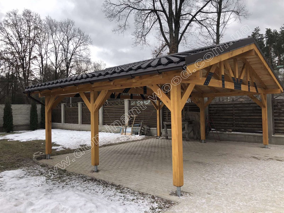 Навіс з дерева для стоянки автомобіля
