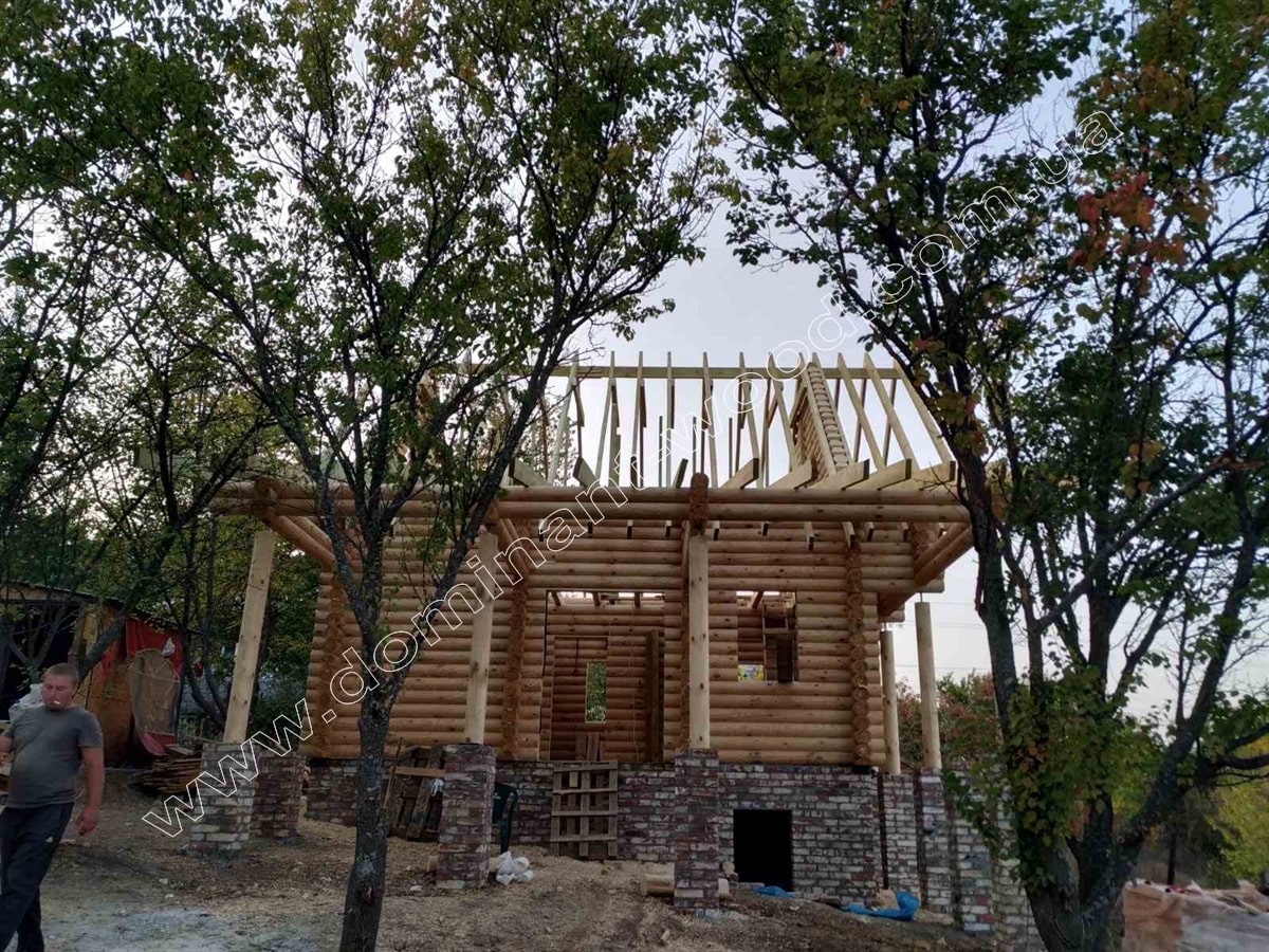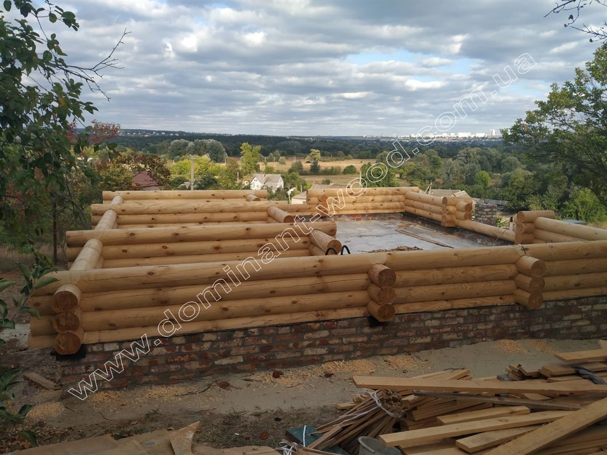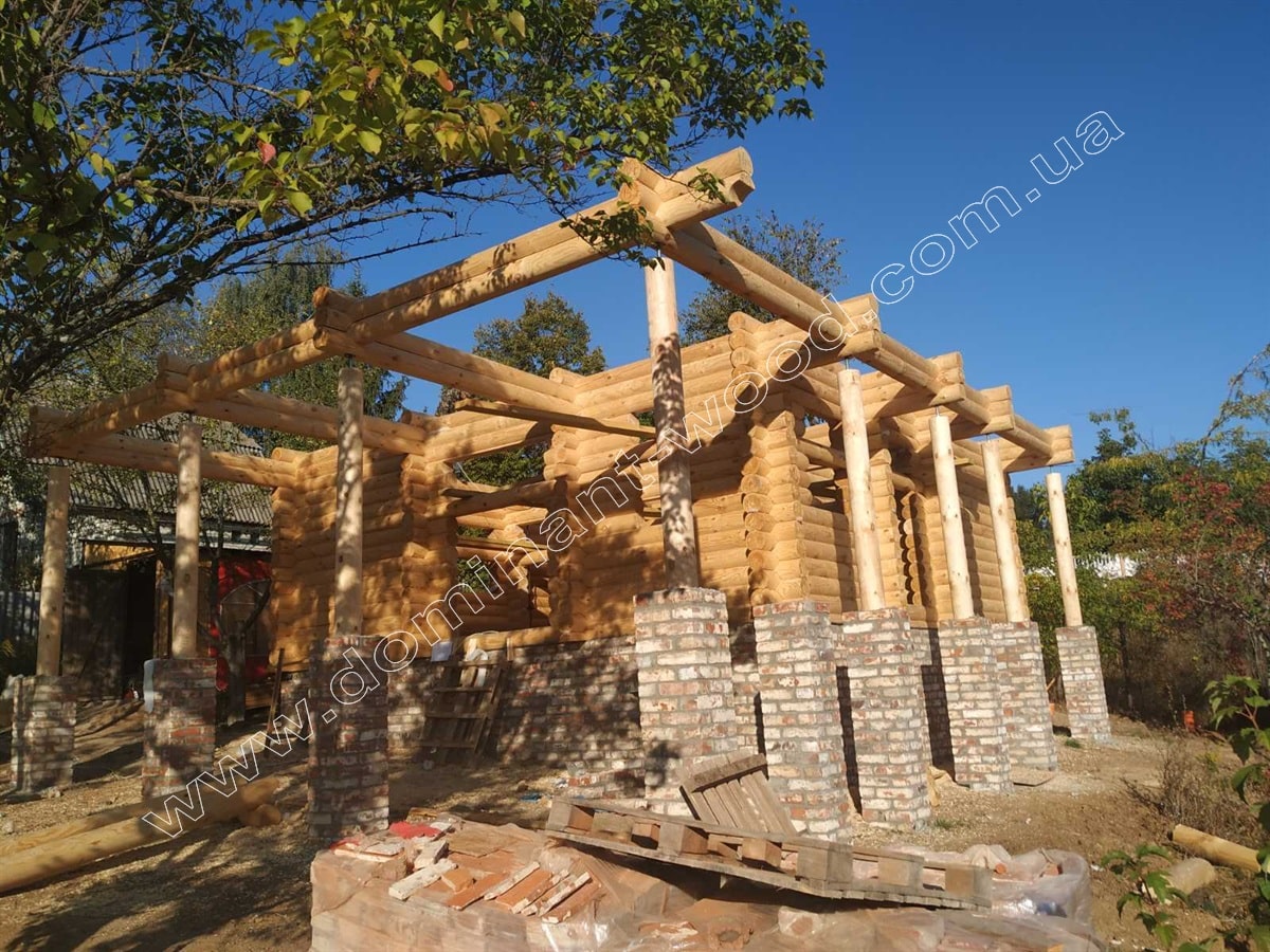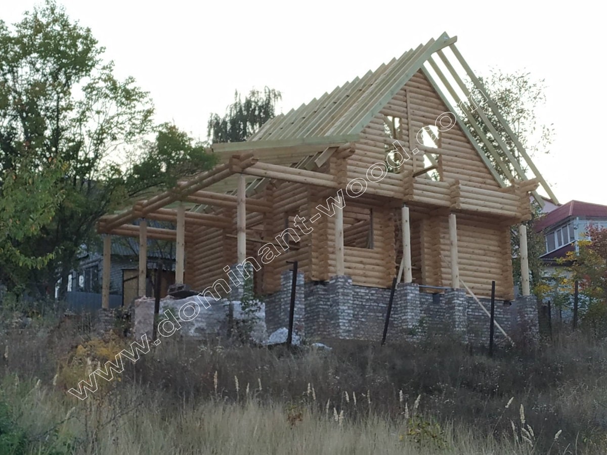 Пропонуємо порівняти вам вихідний проект з новою роботою по його будівництву. Як бачите, крім прибудови навісу був змінений дизайн і планування головного фасаду. Це збільшило площу будівлі по осях до 128,6 м2. Для зведення стін був обраний діаметр колод 200 мм. Це найкращий розмір соснових колод для отримання теплих стін і комфортного цілорічного житла. Відзначимо, що ми пропонуємо вибір різного розміру колод. І якщо ви бажаєте побудувати сезонний або літній котедж, можна вибирати розміри 160 або 180 мм. У випадку з нашою новою роботою з будівництва проекту «Манвіна», господар спланував собі житловий будинок і подбав про належну товщину стін.