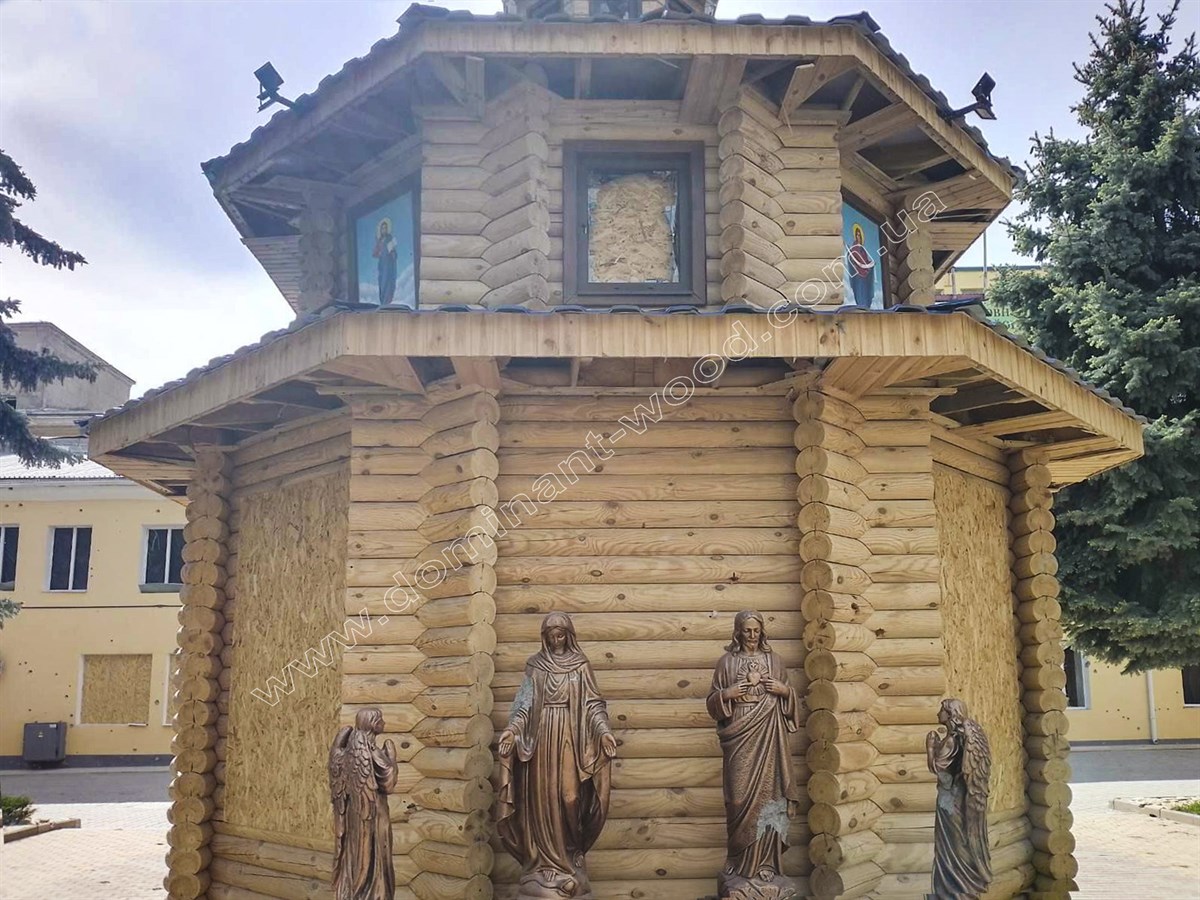 У випадку із замовленням «Каплиці Спасіння Богородиці» до Одеси, її в нас придбали без будь-яких змін у виконанні з соснових колод діаметром 160 мм, змонтували базовий комплект і оздобили його за власними вподобаннями. Після влучання російської ракети капличка потребує відновлення вікон та інших незначних елементів. Але не так легко знищити велику силу віри, закладену в будову з великою любов’ю усіх причетних до створення цього прекрасного сакрального символу.
