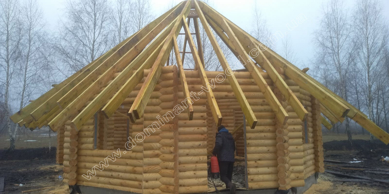 Будівництво дерев'яної кав'ярні «Бескид»