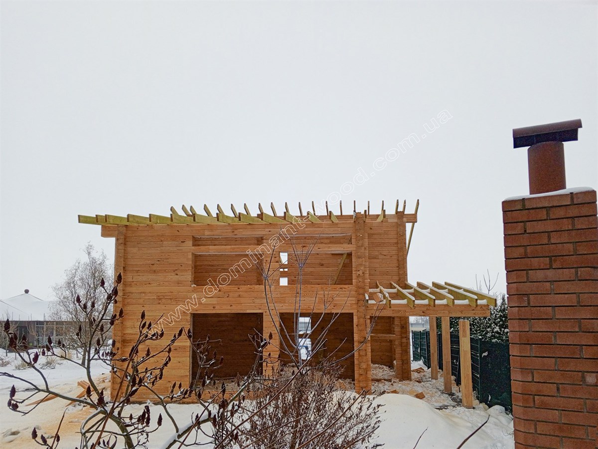 Якщо ви маєте намір побудувати будинок, і у вас є особисті вподобання щодо його дизайну - ми готові розробити проект на основі ваших уявлень про ідеальне житло. Так як ми візьмемось за здійснення ваших бажань, вам непотрібно буде довго вибирати будинок зі стандартних проектів, а після цього витрачати час на його зміни відповідно до власних потреб. Переваги індивідуального проектування вдало демонструє нова робота «Домінант» - будинок з сухого, профільованого брусу, зроблений відповідно до унікальних побажань клієнта. Локація будинку: Кременчуцький район Полтавської області.