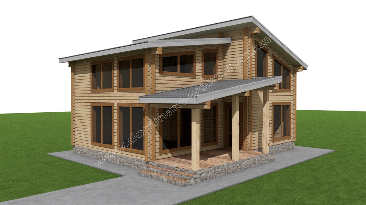 Звернувшись до компанії «Домінант», ви отримуєте можливість реалізувати будь-яку дерев'яну конструкцію без обмежень у дизайні та розмірах. Якщо ви надаєте перевагу природним матеріалам та сучасним архітектурним формам, які підкреслюють справжню красу дерева, вам обов'язково сподобається будинок, про який ми розповімо далі. Це комфортабельний котедж з висушеного профільованого бруса, спроектований на двох поверхах. Він ідеально підходить для створення оригінального дизайну житла та отримання найвищого рівня комфорту.