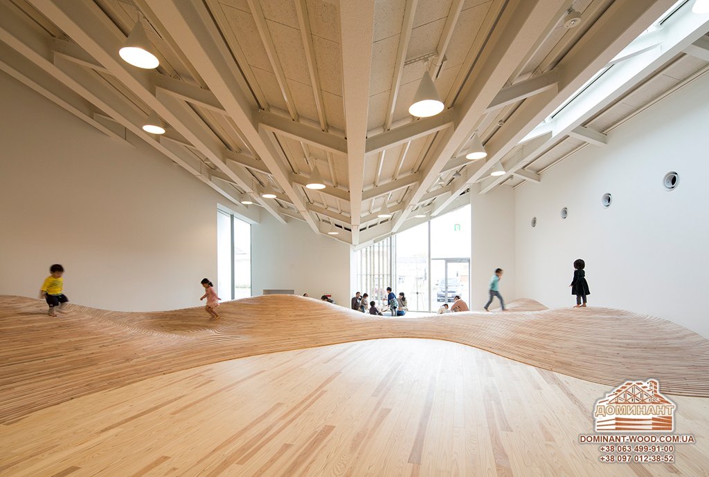 Ще один поціновувач дерева - Кенго Кума. Головний його проект - дитячий садок. Зовні будівля покрита вертикальними рейками. Це не тільки елемент декору, вони затримують сонячні промені. Найцікавіше застосування дерева тут - в ігровій зоні. Воно то здіймається хвилями, то опускається, що перетворить звичайну прогулянку в захоплюючу подорож. У такій естетичної атмосфері у дітей буде формуватися зовсім унікальне сприйняття світу, погодьтеся!