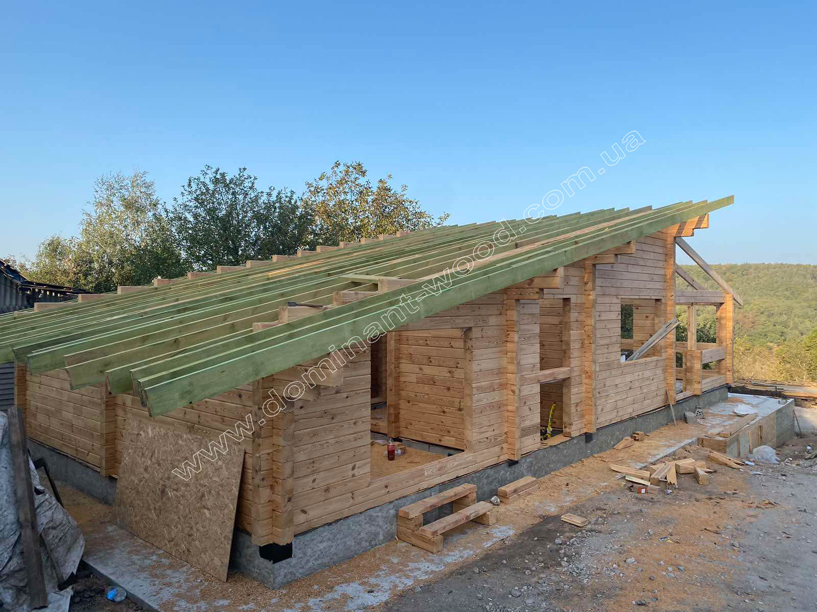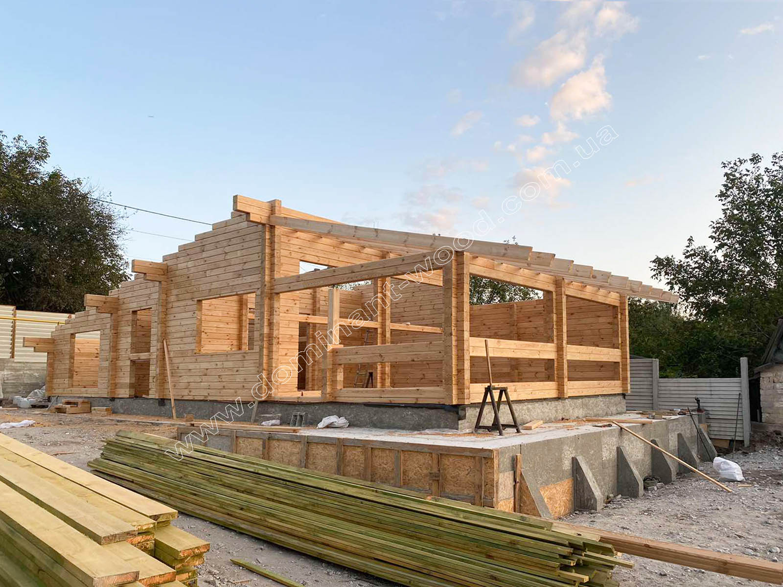 Отже цього разу ми зробили будинковий комплект «Жакона» з сухого, профільованого брусу 150х150 мм та змонтували його на підготовлений заздалегідь замовником фундамент. А далі наш клієнт на проект «Жакона» в Дніпрі самостійно вирішував, яке буде покриття даху, і наші покрівельні майстри зробили саме так, як він хотів. В результаті ми завершили свою роботу на етапі завершення дерев’яного каркасу будинку, покритого дахом. Після цього замовник зайнявся закінченням будинку під ключ самостійно. Ця свобода дій і рішень подобається багатьом нашим клієнтам, адже кожен створює не просто будинок, а свою особисту оселю. До того ж поетапність усіх робіт означає можливість планувати та розподіляти бюджет будівництва. Тому замовляти різні варіанти комплектації в нашій компанії не тільки можливо, але й дуже вигідно.