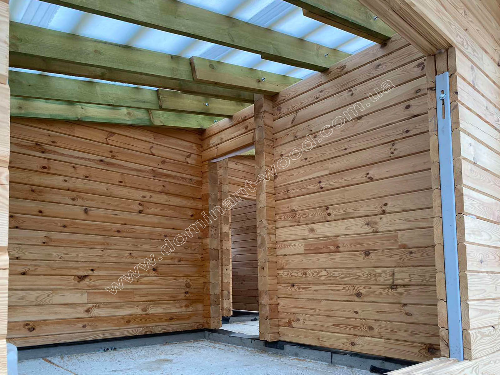 Окремо варто сказати про саме дерево, що закладене в корпус будівлі, точніше про переваги профільованого сухого брусу, який ми використовуємо в будівництві. Завдяки сушінню в прес-вакуумних камерах деревина стабілізується, не тріскає і практично не деформується. У таких спорудах не виникає суттєвої усадки, як це буває з оциліндрованим брусом. Вартість комплекту з висушеного брусу справді вища. Але завдяки рівній, гладенькій поверхні ви економите на подальшому оздобленні. Стінки не потребують шліфування чи герметизації стиків - достатньо фарбування, щоб завершити образ і додати захист деревині. А сам вигляд дерев’яних стін уже створює відчуття завершеності та природної краси.