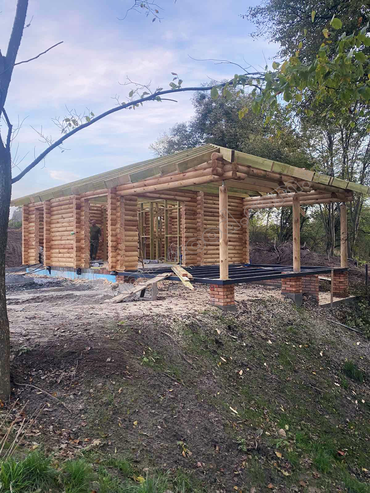 Готовий будівельний комплект від «Домінант» - це шанс отримати добротний дерев’яний зруб безпосередньо від виробника, без посередників і переплат. Замовник сам вирішує, що йому зручніше: довірити монтаж нашій команді чи зібрати конструкцію власними силами. Під час реалізації об’єктів для відпочинкового комплексу, зокрема й лазні з терасою, місцеві фахівці опанували особливості складання колодяних зрубів і частину споруд замовляли у форматі конструктора для самостійного встановлення. Аналогічно було й з цією лазнею: ми виготовили повний дерев’яний комплект з колод Ø 180 мм, а підрядник клієнта разом зі своєю бригадою виконав монтаж безпосередньо на ділянці. Такий підхід дозволяє зекономити на проживанні та дорозі нашої команди з Житомира. Крім того, в нинішніх умовах сформувати повноцінну монтажну бригаду значно складніше через дефіцит кадрів, спричинений мобілізацією.