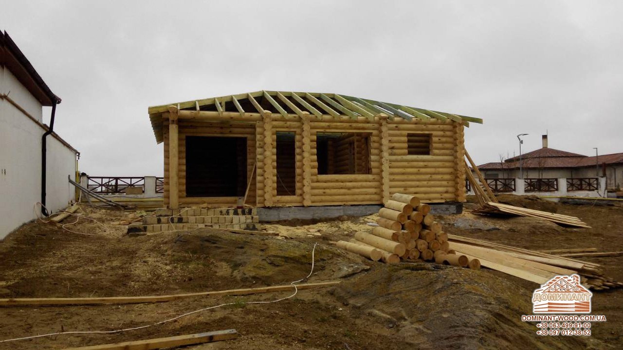 Зараз ми будуємо відразу два таких зруби з колод діаметром 220 мм в Азербайджані. Площа будиночків становить 51 м2 згідно другої моделі проекту «Континент2» .