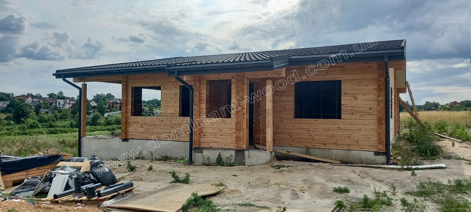 Звернувшись до компанії «Домінант», ви зможете реалізувати будь-яку конструкцію з дерева без обмежень у дизайні та розмірах. Якщо ви віддаєте перевагу натуральним матеріалам, лаконічним і прямим архітектурним лініям, які підкреслюють класичну красу справжнього дерева, вам точно сподобається будинок, про який ми сьогодні розповімо. Це сучасний, комфортабельний котедж з висушеного профільованого бруса, спланований на одному поверсі, який ідеально підходить для створення максимального комфорту та підвищення якості життя!