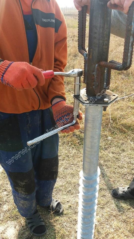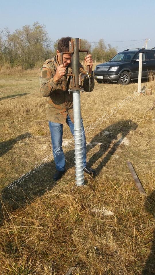 Монтаж геошурупів набагато простіший установки всіх інших видів фундаменту, так як вони закручуються в ґрунт без залучення складних, будівельних механізмів двома-чотирма будівельниками за допомогою спеціальних важелів.