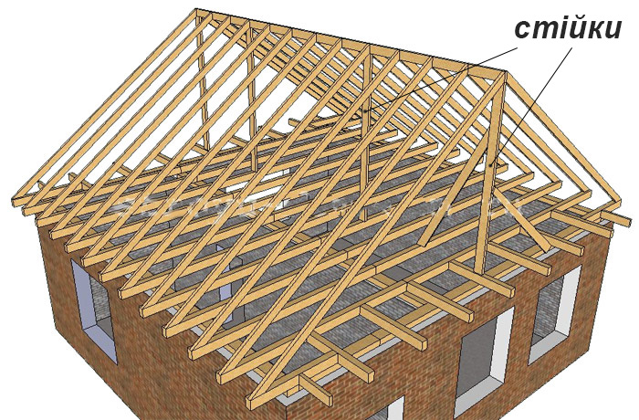 Система стійок в кроквяній системі відіграє важливу роль для зміцнення конструкції. Стійкість покрівельної конструкції досягається завдяки жорсткому закріпленню нижній частині стійок. Вони врубаються в лежні і кріпляться таким способом, щоб нижній вузол спирання стійки з шарнірного в площині крокв переходив в вузол з жорстким закріпленням на площині лежнів. Для міцності і стійкості кроквяної системи сама стійка, а також місця її з'єднань з іншими елементами конструкції, повинні бути жорсткими, стійкими до деформації при зусиллі зсуву і при зусиллі розпору.
