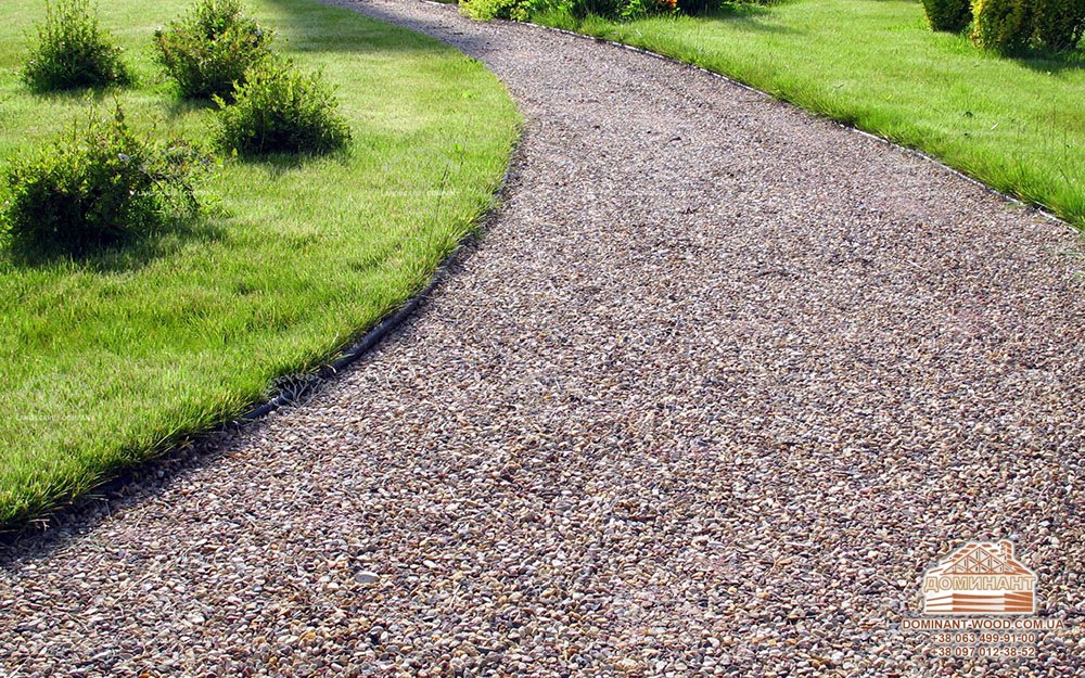 Це досить простий в укладанні і дешевий матеріал, який відмінно підійде для звивистій стежки. Але треба пам'ятати, що гравій не витримає великого навантаження, з часом вростає в землю, а доріжку періодично потрібно буде прополювати.