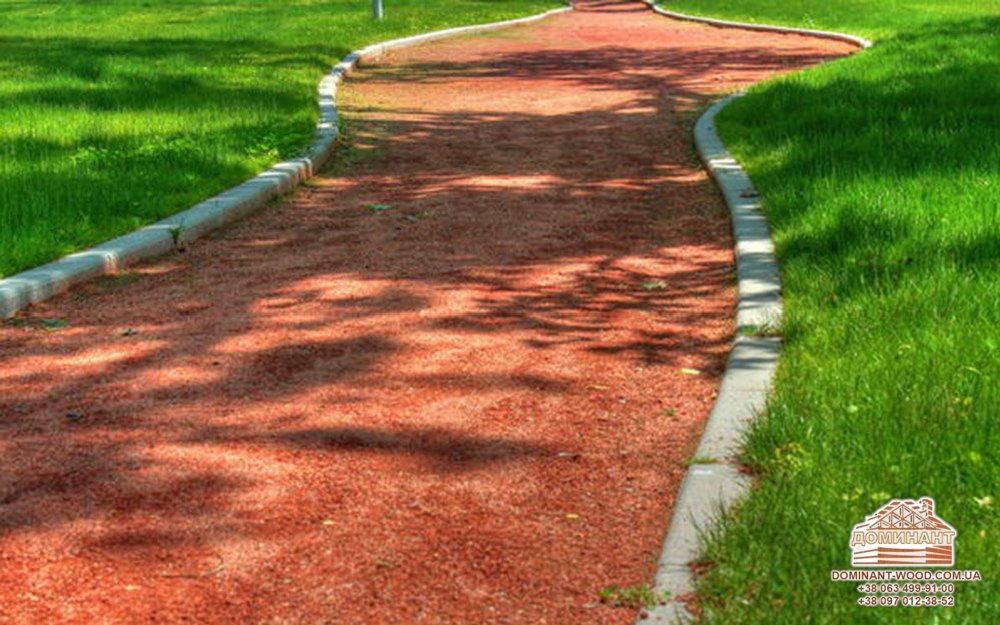 Це ідеальне рішення для великої ділянки, однак, така доріжка вимагає особливого догляду. Для того, щоб не допустити розмивання підстави стежки, варто розсипати на поверхні пісок і розкидати його так, щоб він заповнив щілини.