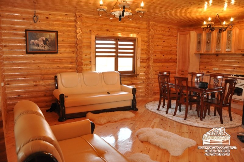 Затишний мікроклімат. Унікальні характеристики дерева дозволяють підтримувати всередині приміщень вологість близько 50%. До того ж будівлі не бояться ні морозів, ні спеки, так що мікроклімат у вашій оселі завжди буде оптимальним. Зверніть увагу, якщо ви плануєте експлуатувати будинок взимку - діаметр колоди повинен бути не менше 200 мм.