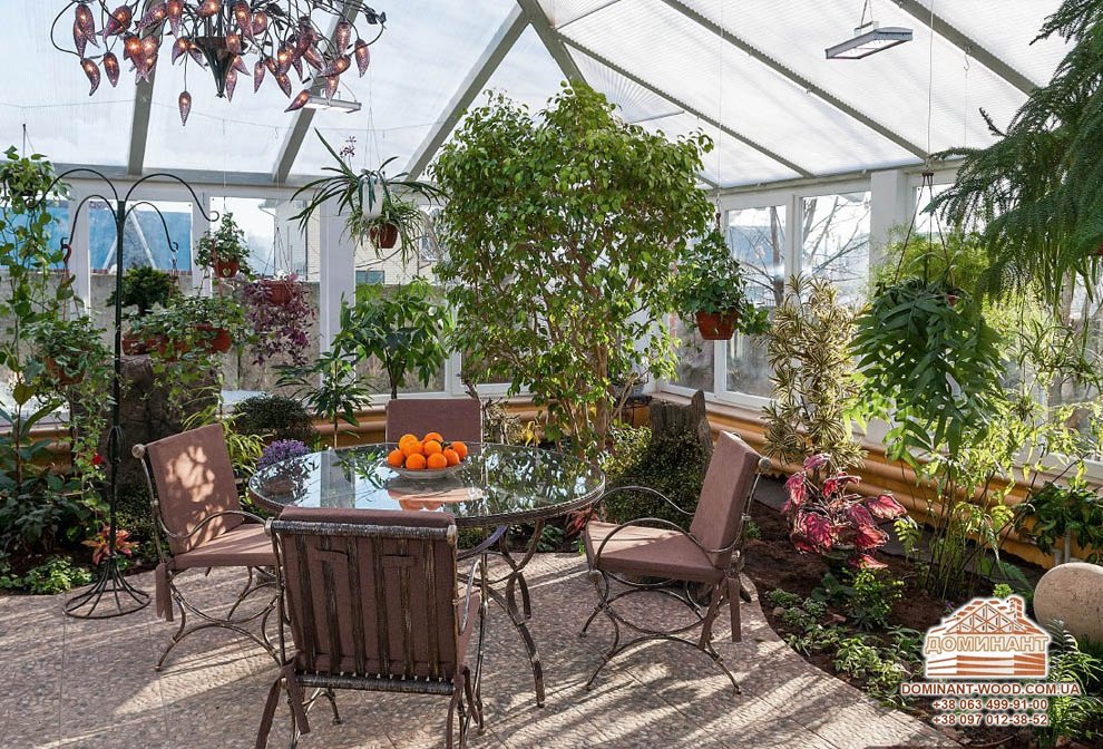 Теплицю або зимовий сад хочуть навіть ті, хто не захоплюється вирощуванням овочів і фруктів, адже в такій споруді можна зберегти цілорічне літо! Зимовий сад можна також зробити окремо від будинку, а можна влаштувати його прямо в будинку. Як, наприклад, в наших проектах будинків з дерева із зимовим садом. Якщо бажаєте оригінально оформити зимовий сад у вигляді ефектного дерев’яного павільйону - до ваших послуг категорія проектів «Павільйони», які можна засклити і використовувати в тому числі як закриту терасу.