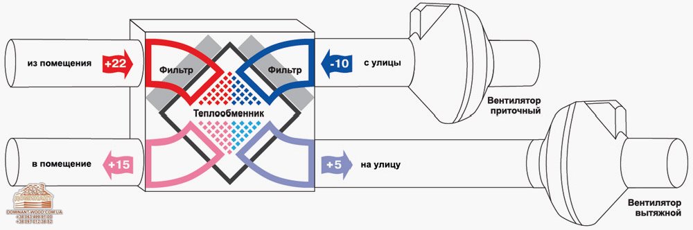 Рекуператор - це теплообмінник, який використовує теплоту зі стороннього джерела. Взимку він повертає теплову енергію, яка витікає з повітрям, що видаляється, а влітку перешкоджає проникненню спеки. У рекуператорі зустрічаються два потоки повітря - витяжне і припливне, які через різницю температур обмінюються тепловою енергією. Простіше кажучи, холодне повітря нагрівається, теплий - охолоджується. Рекуператор споживає мало електрики, зберігає чистоту повітря і працює дуже тихо.