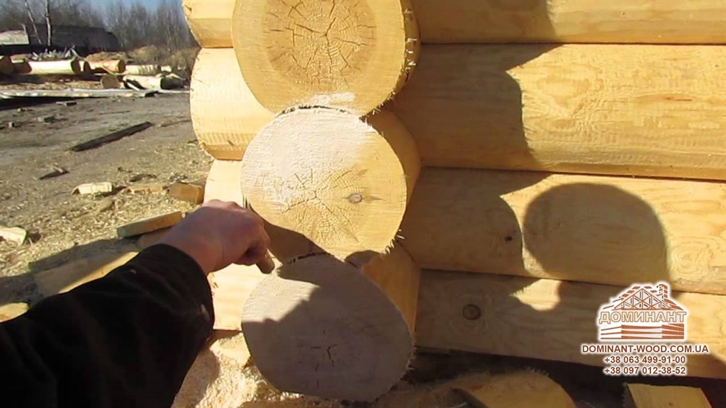 2. Компенсаційний паз. Щоб після рівномірного, атмосферного просушування в природних умовах зробити колоду ще стійкішою до зовнішніх впливів - на ній слід зробити спеціальний паз до торців уздовж всієї осьової поверхні. Такий пропил називають компенсаційним, тому що він знімає внутрішні напруження в колоді і виключає розрив волокон. Під час механічної обробки колод, компенсаційний паз виконується на верстаті. Пази вирізаються, як правило, у верхній частині, щоб направити тріщини при їх виникненні до верху. Тоді їх закриє паз верхнього колоди, захищаючи від проникнення вологи і утворення «містків холоду».