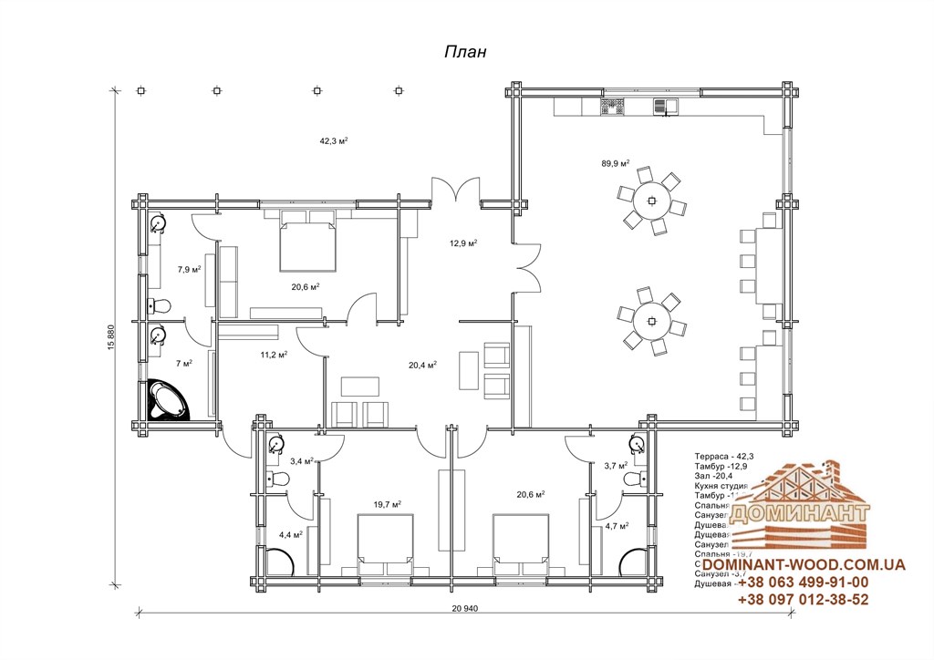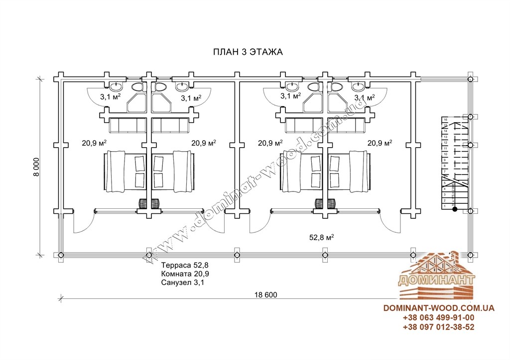 Готель з подвійного бруса з утепленням: проект «Дамейя»