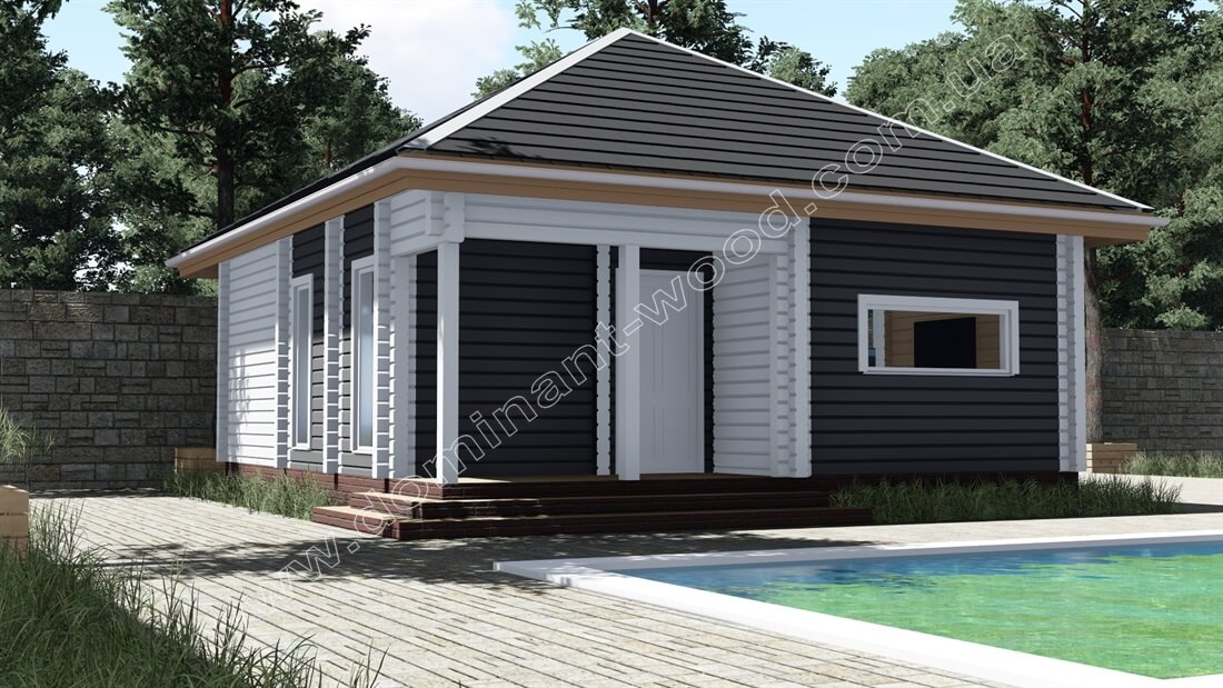 Одна з новинок серед наших проектів – це дерев'яний котедж «Танаш». Ми просто не могли залишити без уваги його модерністський образ. Ілюзія поєднання двох будівель під одним дахом проекту «Танаш» створюється завдяки симетричному оформленню фасадів по обидва боки від входу. А внутрішній комфорт створюється завдяки великому простору житлових кімнат, наявності підсобних приміщень та вмілому зонуванню простору.