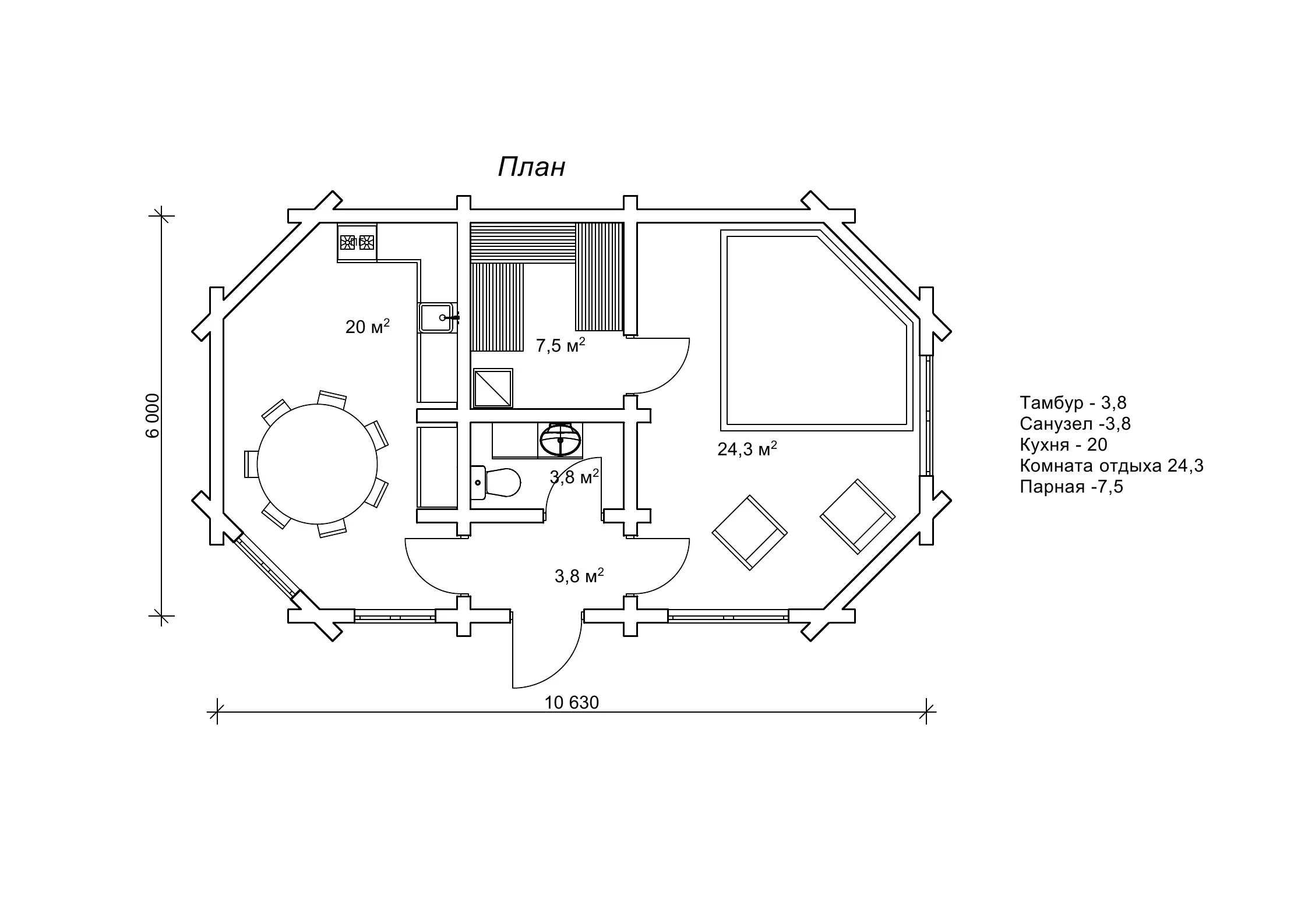 «Самелла»: лазня 5,8 на 5,2 м з асиметричним дахом
