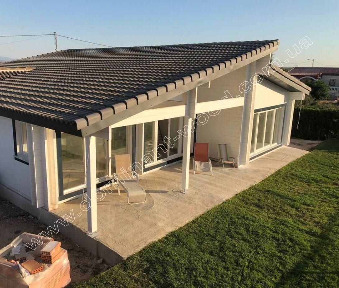 Будинок з утепленого брусу «Брілана» спершу робили під клієнта з Іспанії. У проекті врахували все - і клімат, і архітектурні традиції. Подвійні бруси з утеплювачем тримають прохолоду навіть у спеку. Взимку стіни добре утримують тепло. Це насправді універсальний дім. І для півдня, і для півночі. Розмір будинку 11,8 на 11,9 м. Зовнішні стіни подвійні, з утепленням усередині. Внутрішні перегородки робляться з сухого профільованого брусу 60×150 мм.