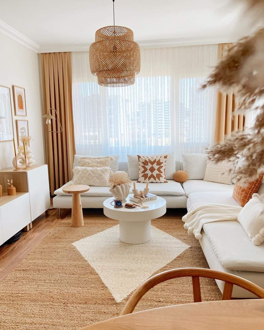 Найпростішим і найскорішим способом оновлення інтер’єру буде додавання в інтер’єр будинку текстилю з відтінком Peach Fuzz – це може бути плед, подушки, фіранки або штори, персиковий, пухнастий килимок. Всі ці речі пом’якшать обстановку і зроблять кімнату затишнішою.