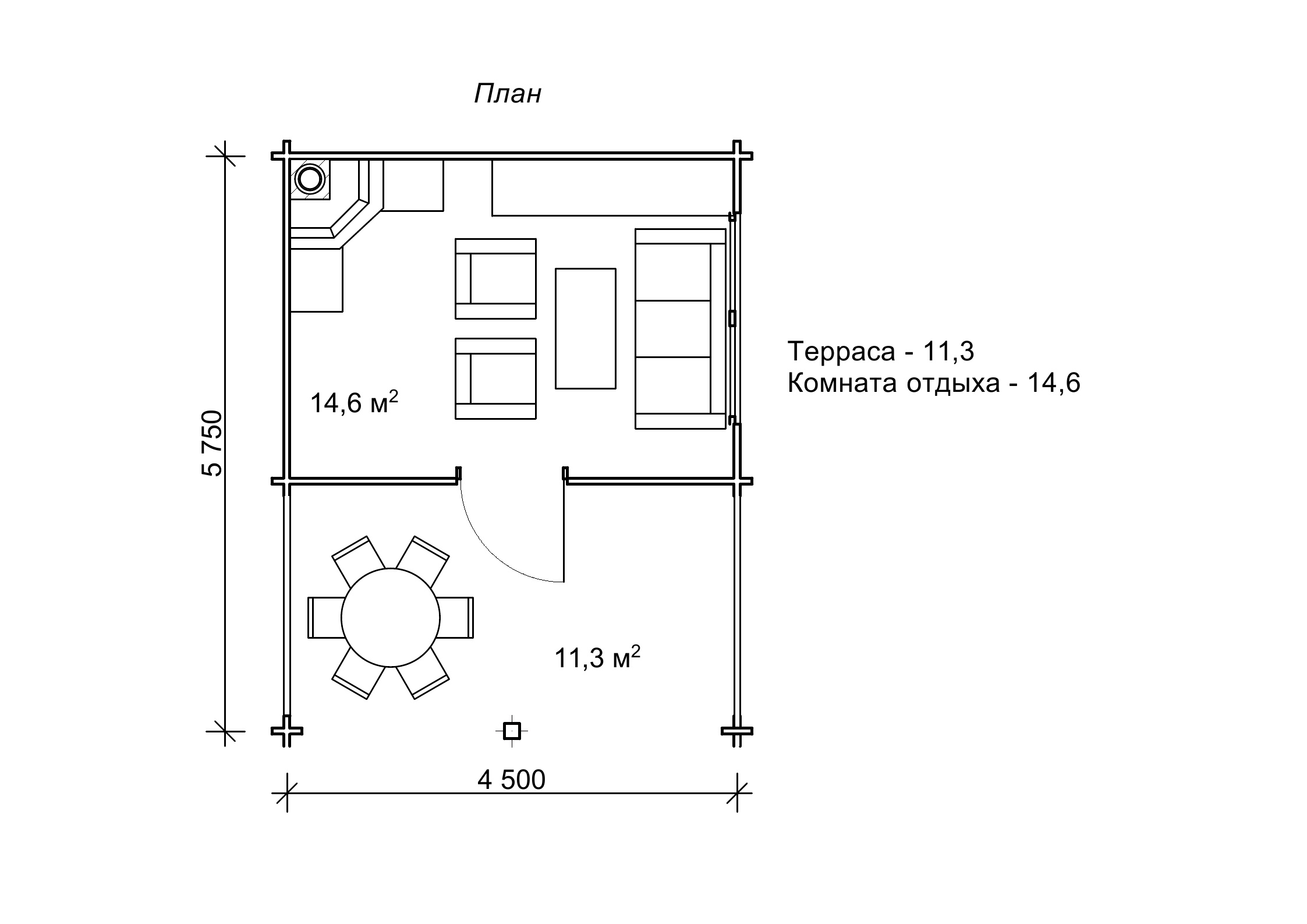 Дерев'яний літній будиночок з терасою має мініатюрні розміри і загальну площу 29,5 м2. Будиночок виконаний в класичному стилі, тому з легкістю впишеться в будь-який ландшафт. Площа проекту «Літтен» розділена на закриту кімнату розміром 14,6 м2, і відкриту терасу площею 11,3 м2. Таке планування робить будиночок «Літтен» багатофункціональним. Адже в теплу пору його можна використовувати як літню кухню і збиратися всією сім'єю на затишній терасі за смачним обідом, насолоджуючись природою. При бажанні можете облаштувати і використовувати проект «Літтен» в якості літнього будиночка для гостей. Площа кімнати дозволить обставити її зручними меблями і навіть виділити місце для кутового каміна. Це місце стане справжньою віддушиною на лоні природи, підніме настрій, відновить сили і надихне на звершення в одноманітною низці буднів.