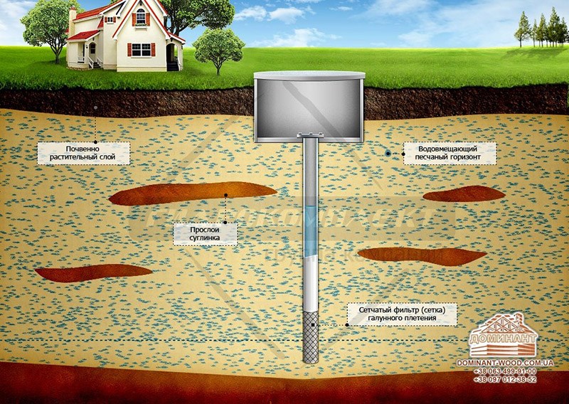 Найпростіша і дешева конструкція — це колодязь. Його глибина зазвичай складає від п'яти до п'ятнадцяти метрів.