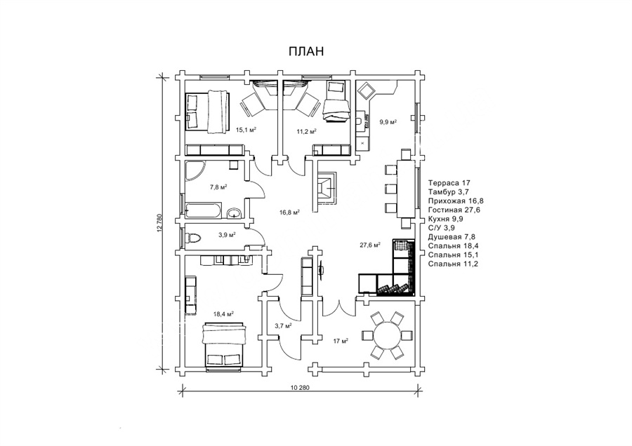 Це означає, що капіталовкладень на заливку фундаменту більше буде саме під одноповерховий будинок. Також і на площу покрівлі витрати в проекті «Барон» вдвічі більше і становлять 140 220 грн., тоді як накрити покрівельним покриттям «Тойдрім» коштує 66 215 грн. Це дуже прості розрахунки, які, тим не менш, допомагають розставити пріоритети при виборі одноповерхового або двоповерхового будинку зі зрубу.