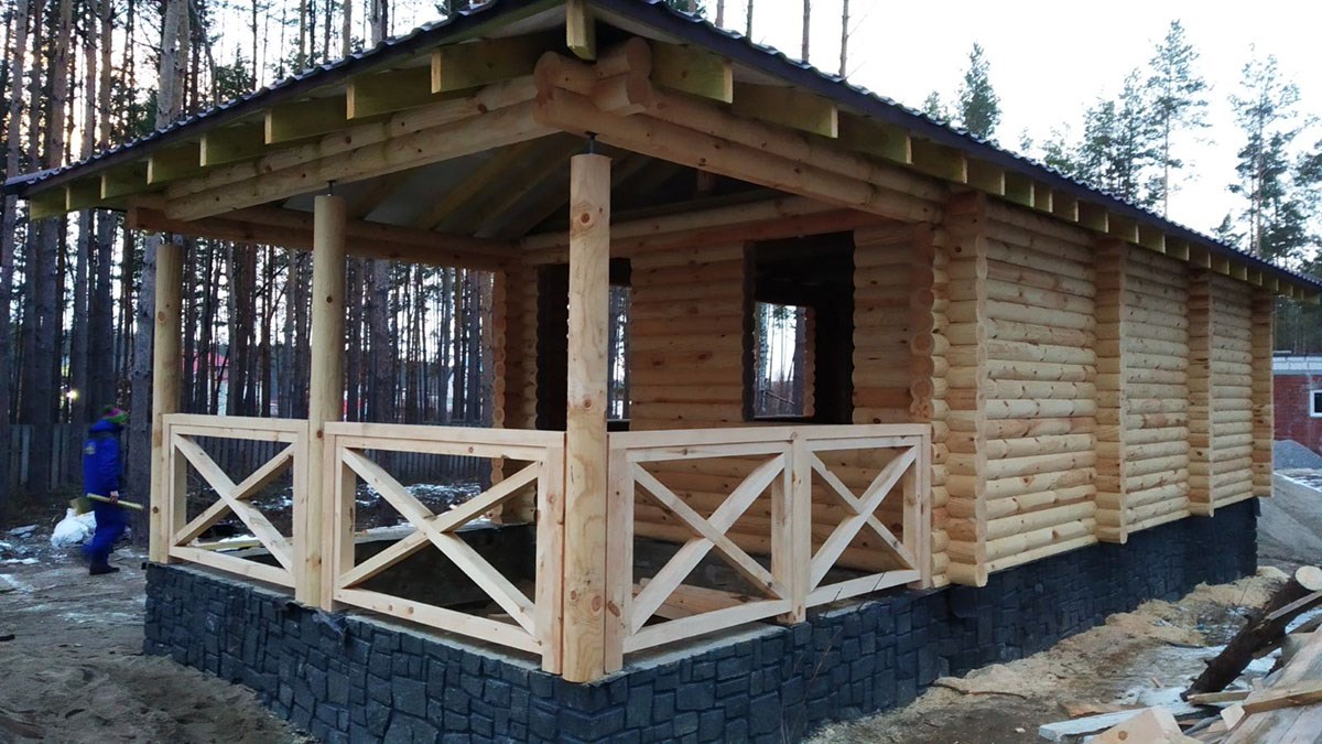 Якщо ви передбачте наявність при лазні тераси, то в літній час там буде набагато приємніше охолодитися після жаркої лазні за чашкою трав'яного чаю. Тому завбачливі клієнти воліють отримати функціональну лазню з терасою і навісом на свіжому повітрі. Побудувавши лазню з бруса з терасою, немає необхідності споруджувати окреме приміщення альтанки в саду, так як у вас вже близько лазні облаштоване місце для застілля на відкритому повітрі. Подбавши про наявність тераси та інших важливих елементів в лазні, цілком можна використовувати її як повноцінний дачний котедж або гостьовий будиночок.