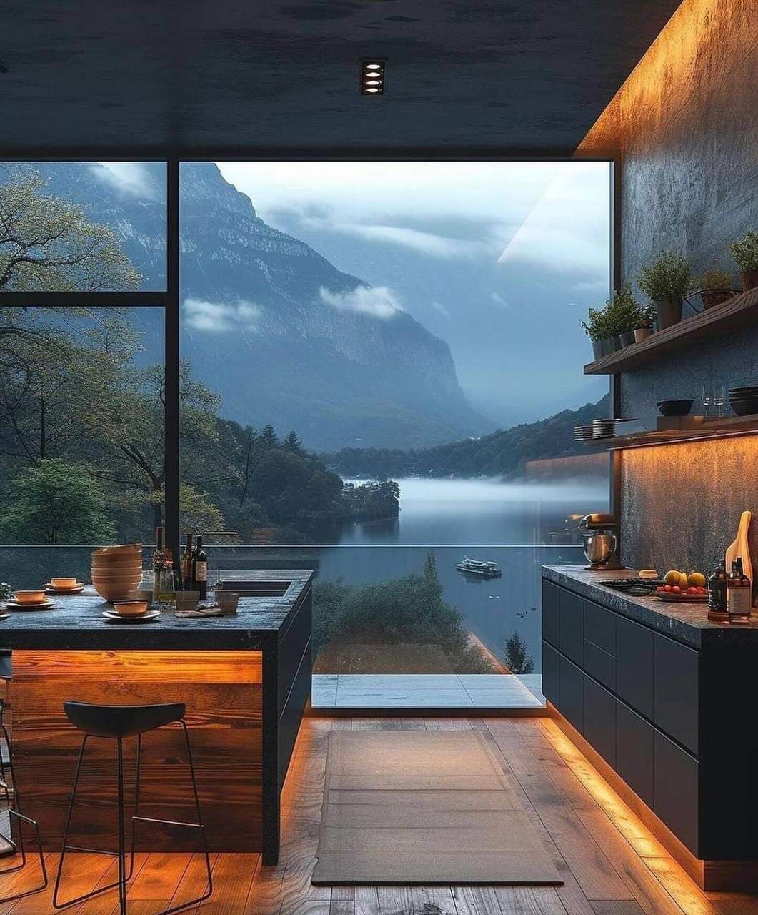 Великі вікна і панорамний вид. Навколишня природа повинна бути завжди на виду. Великі вікна або панорамні скляні стіни дозволяють насолоджуватися красою природи, навіть перебуваючи всередині будиночка.