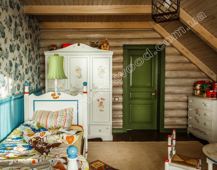 Цікаві деталі інтер'єру дитячої кімнати в дерев'яному зрубі