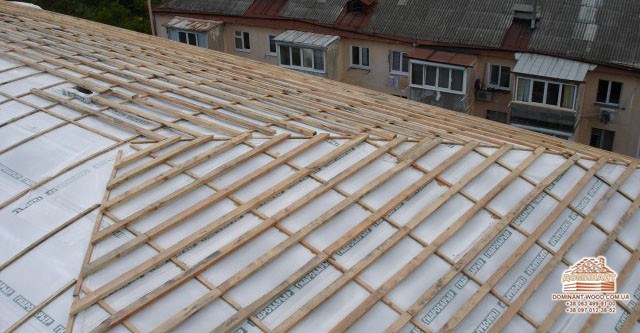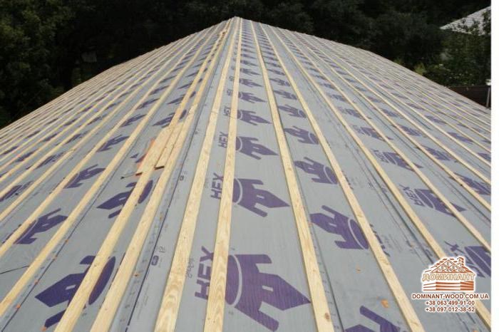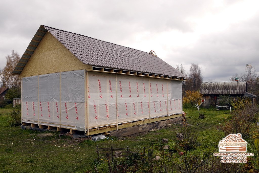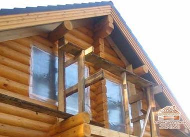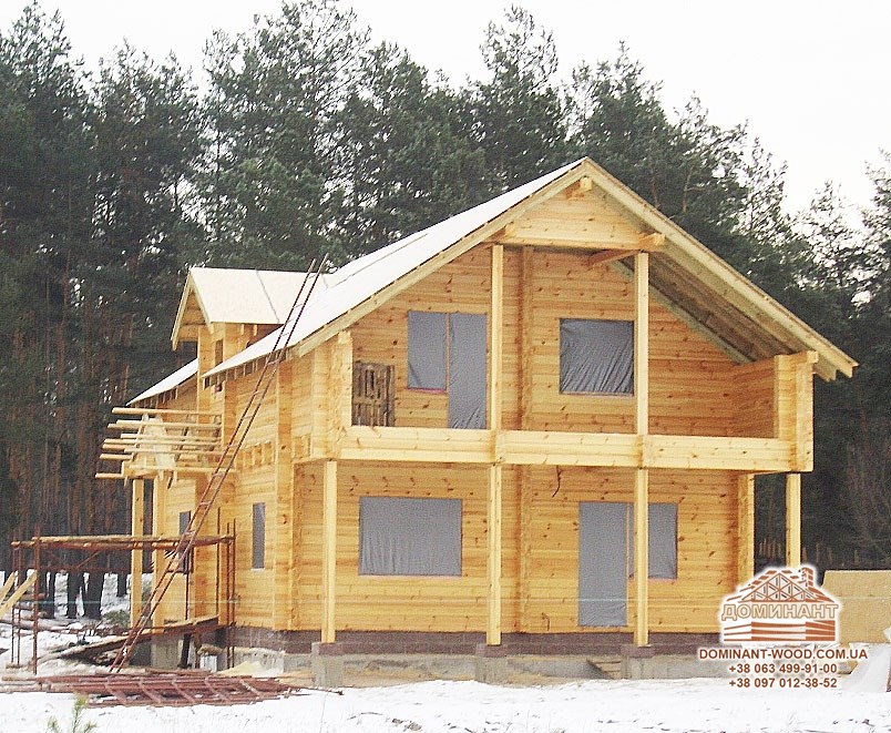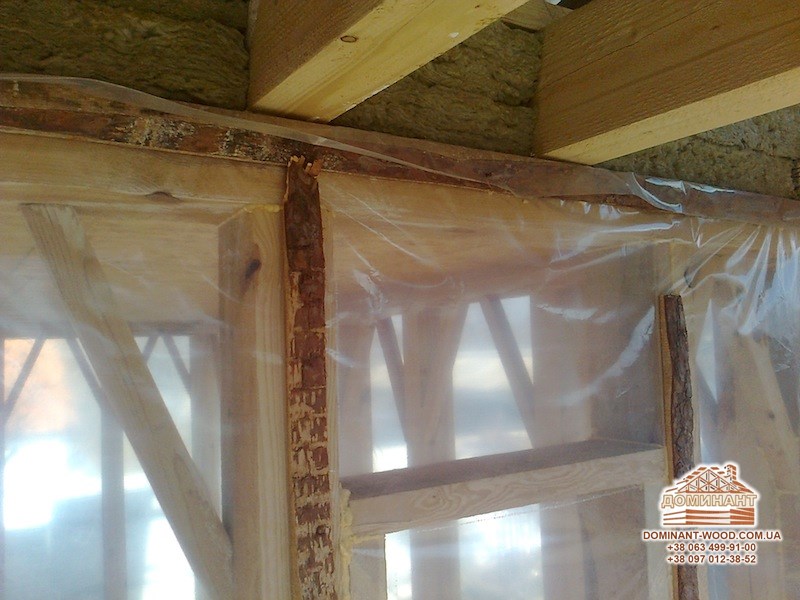 На стіни зверху укладаються дошки, на них кладуть ізоляційний матеріал - руберойд або армовану плівку, і прикладають цеглою або рейками. Дверний отвір потрібно закрити «тимчасовими дверима» або дерев’яним щитом і закрити плівкою. Обов’язково перевіряємо стіни і стики. Всі щілини потрібно законопатити клоччям. Якщо колоди на етапі виробництва не проходили антисептику - стіни потрібно обробити антисептиком, інакше навесні на колодах може з’явитися цвіль, а виправити колоду після такого сусідства важко. Ось чому дерев’яний брус, який виробляється нашим підприємством «Домінант», обов’язково проходить подвійний захист антисептиком плюс обробляється вогнебіозахистом. Таким чином, ми будуємо надійні будинки і добре спочатку захищаємо стіни споруди від негативних зовнішніх факторів.