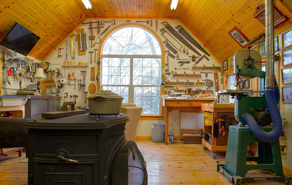 Велика дерев'яна садиба і територія при ній завжди вимагають належного догляду. Іноді для зберігання домашнього та садового інвентарю будують цілий будиночок-сарай у дворі, де влаштовують куточок для зберігання інструментів. Але дивіться, як вам може бути зручно, якщо відокремити під майстерню кімнату в будинку. І не треба бігати за інструментом в холодний сарай або влаштовувати безлад посеред коридору. І, до речі, майстерня стане корисним приміщенням не тільки для господаря, а й для господині-художниці або швачки. Творчій людині обов'язково потрібно усамітнення для створення шедевру. Таких багато є письменників, художників, музикантів. Вони тікають від світу для того, щоб згодом віддати йому плоди свого усамітнення.