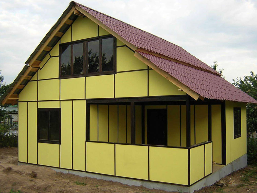 Сендвіч-панелі для облицювання фасадів. Металеві, ПВХ, або магнезитові плити з утеплювачем в середині панелі. Відрізняються легкістю і різноманітністю текстур, відмінно утеплюють будівлю.